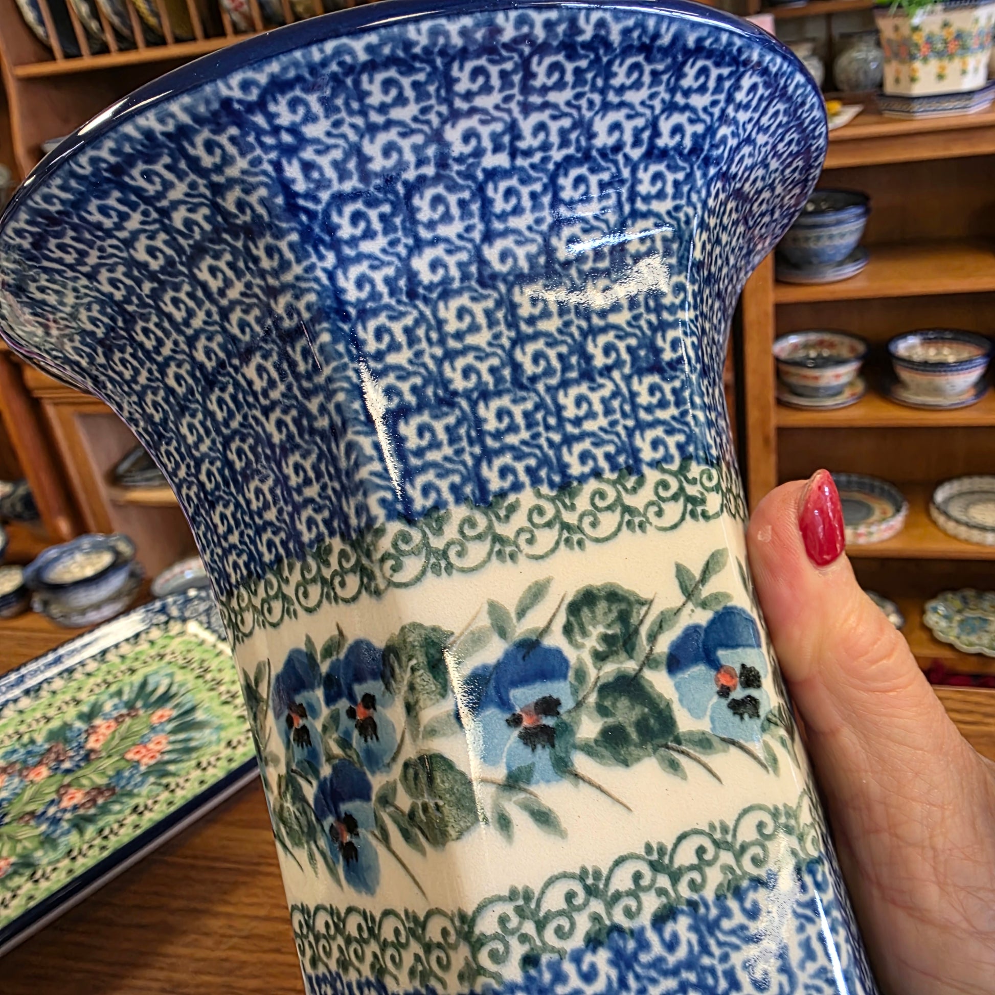 Polish PotteryVase ~ 9.5" 2273X ~ Winter Viola pattern. Handmade in Boleslawiec, Poland. We ship from Melbourne, Florida