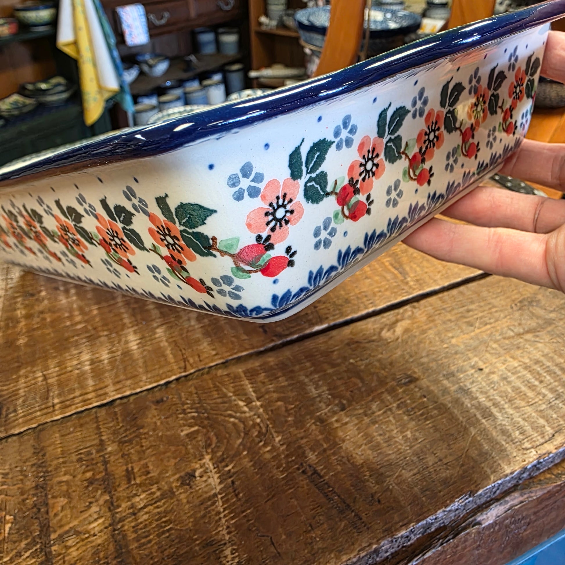 Polish Pottery Baker Brownie 7.5" x 13" 2103X ~ Cherry Blossoms