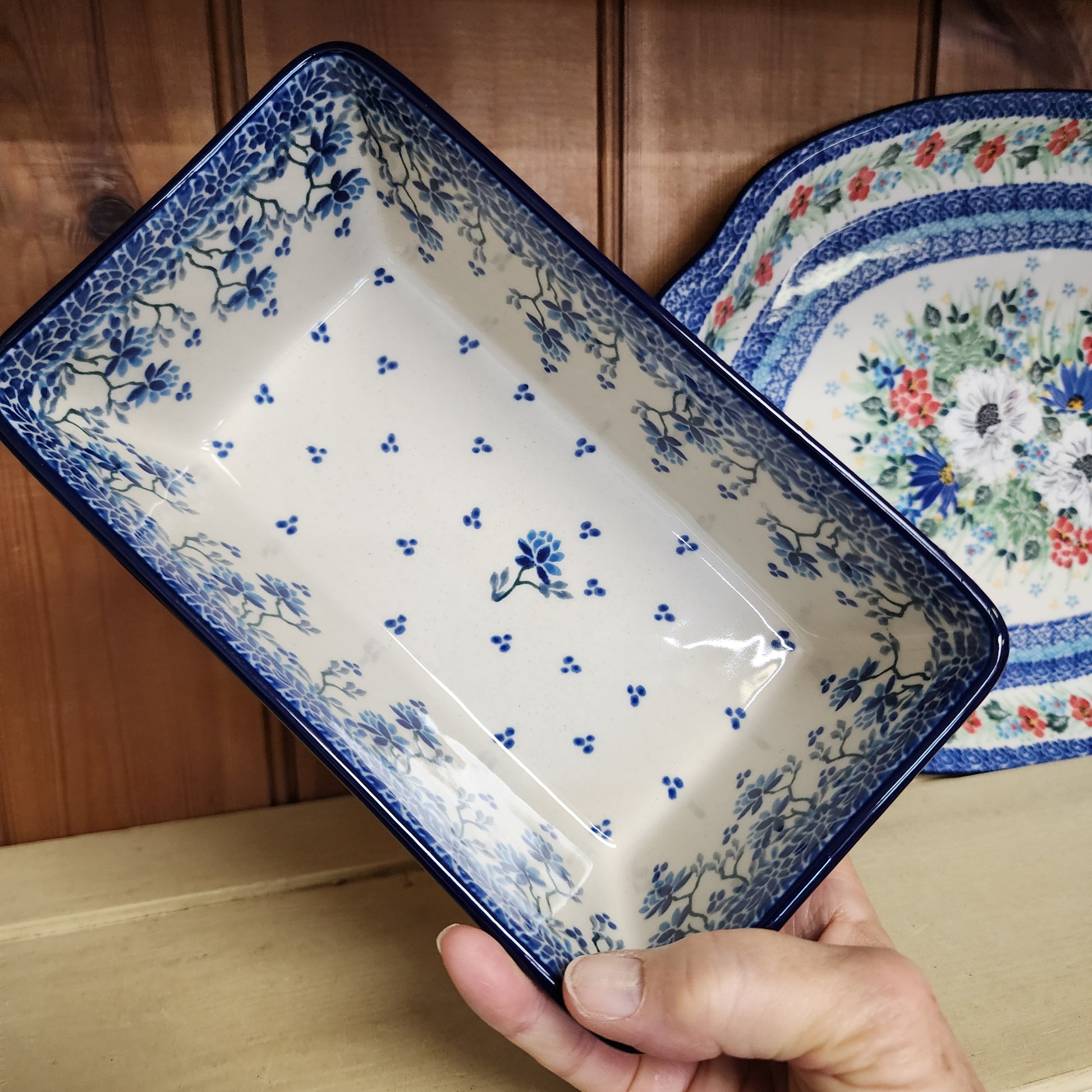Polish Pottery Baker Loaf Pan 7.75"w X 8"L 2524X ~ Clover Fields