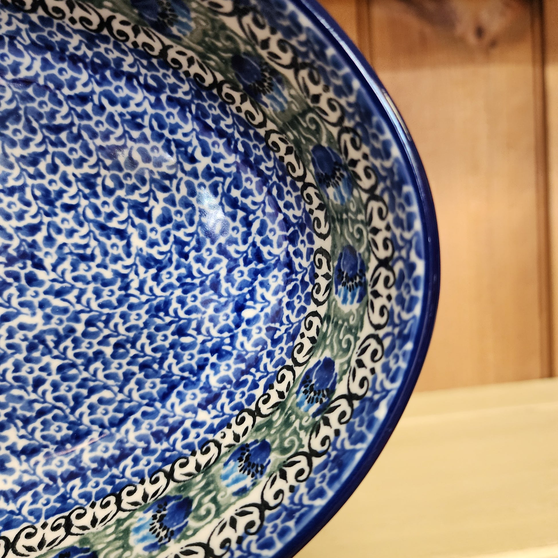 Polish Pottery Baker Oval 9.5" 1513X ~ Peacock Feather