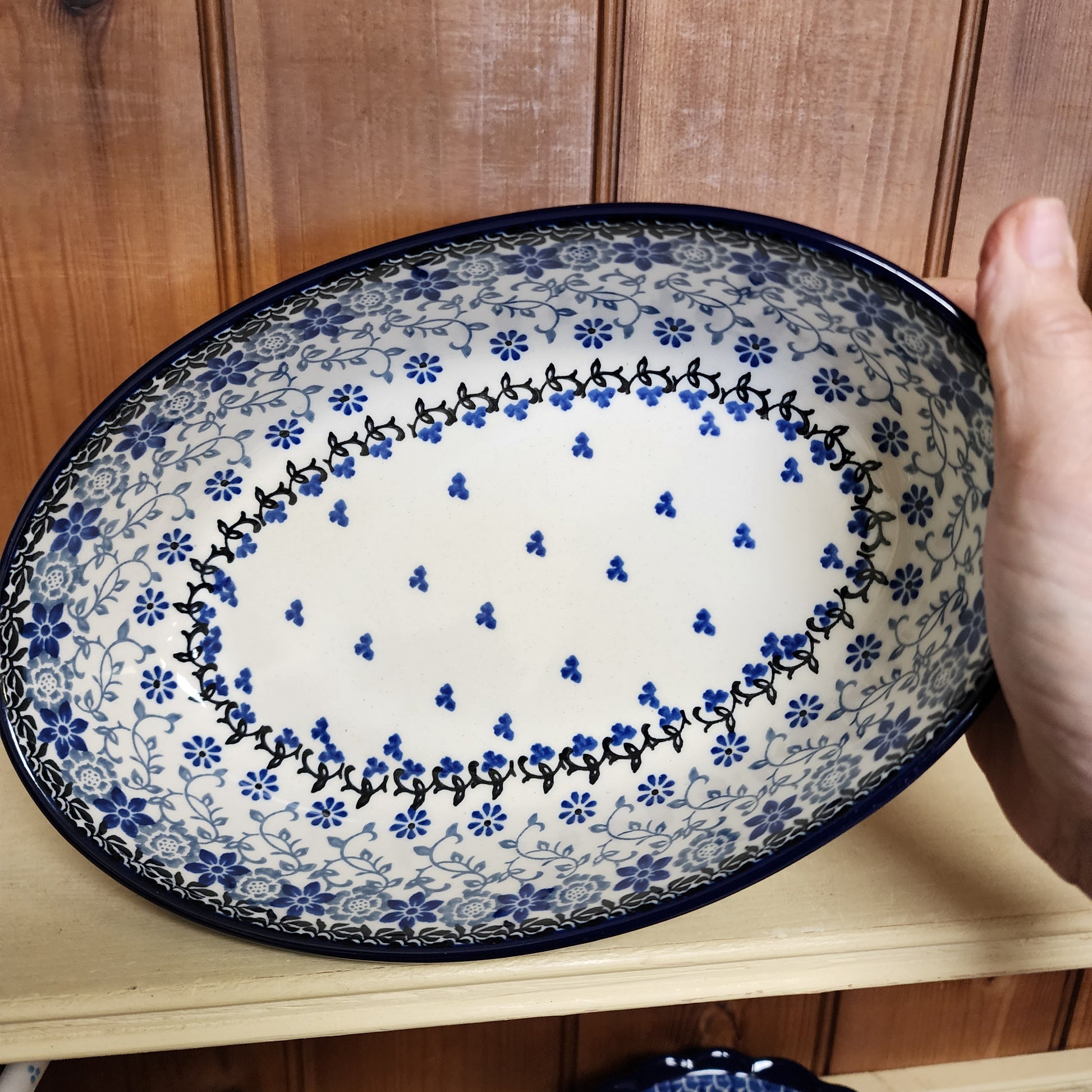 Polish Pottery Baker Oval 9.5" 2158X ~ Silver Lace