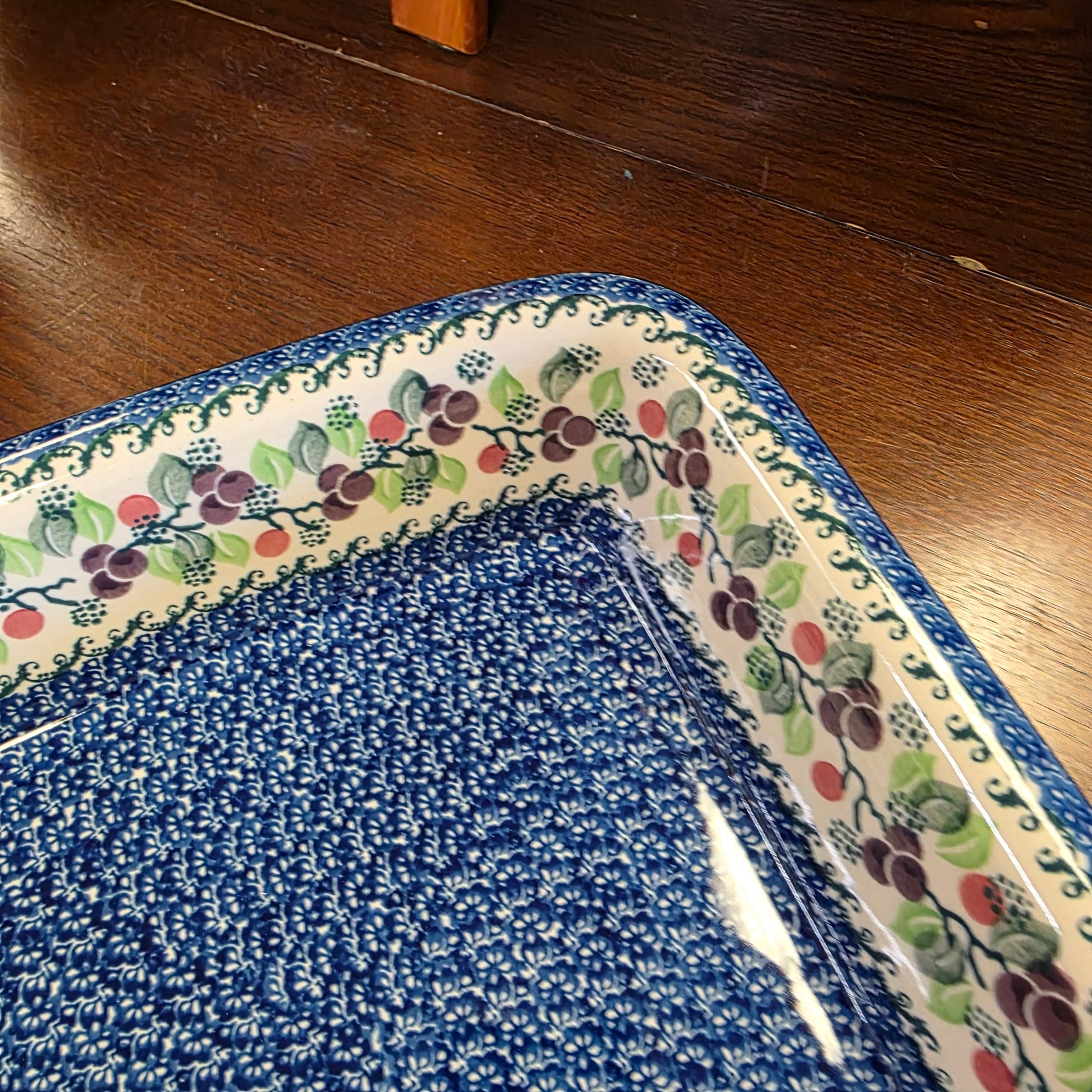 Polish Pottery Baker Rectangular w/Rim Lasagna 11.25" x 13.75" 1418X ~ Burgandy Berry Blue