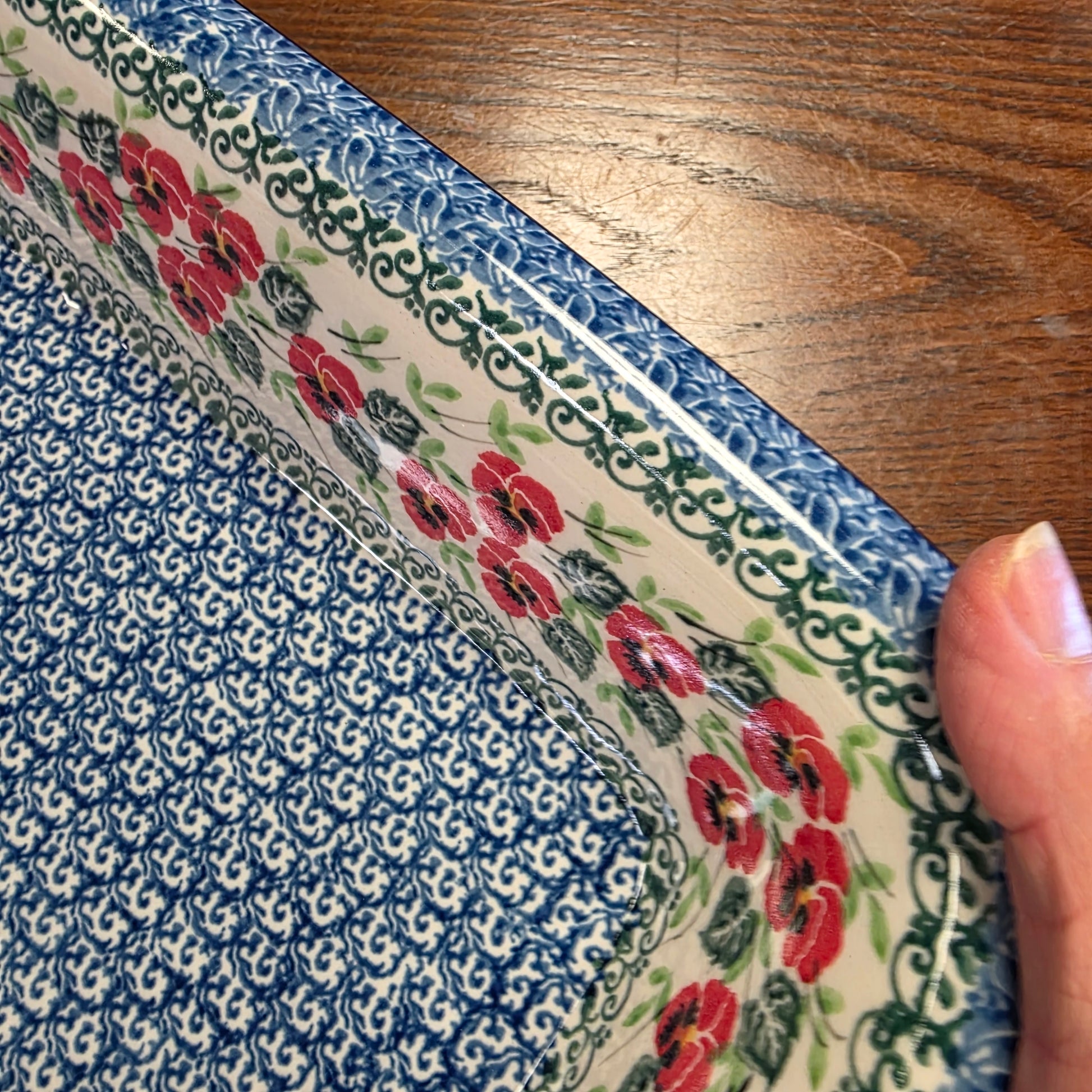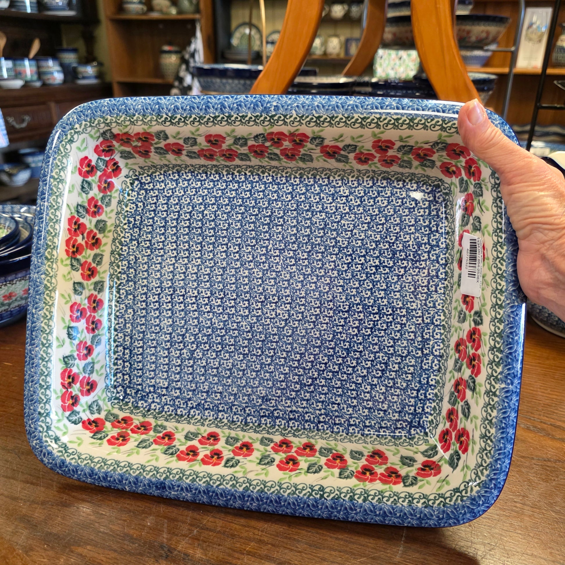 Polish Pottery Baker Rectangular w/Rim Lasagna 11.25" x 13.75" 2538X ~ Red Pansy