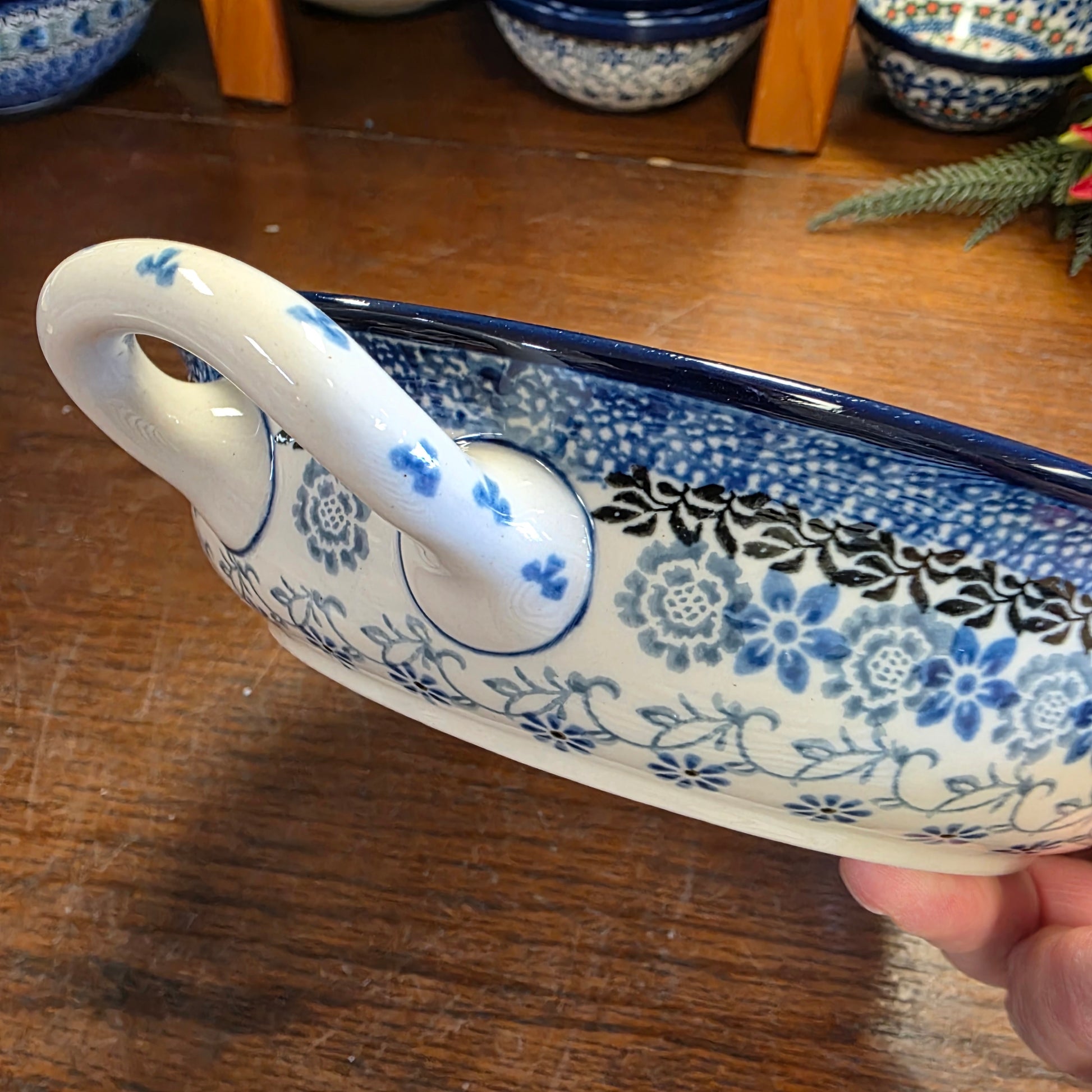 Polish Pottery Baker Round w/ Handles 8" 2158X ~ Silver Lace