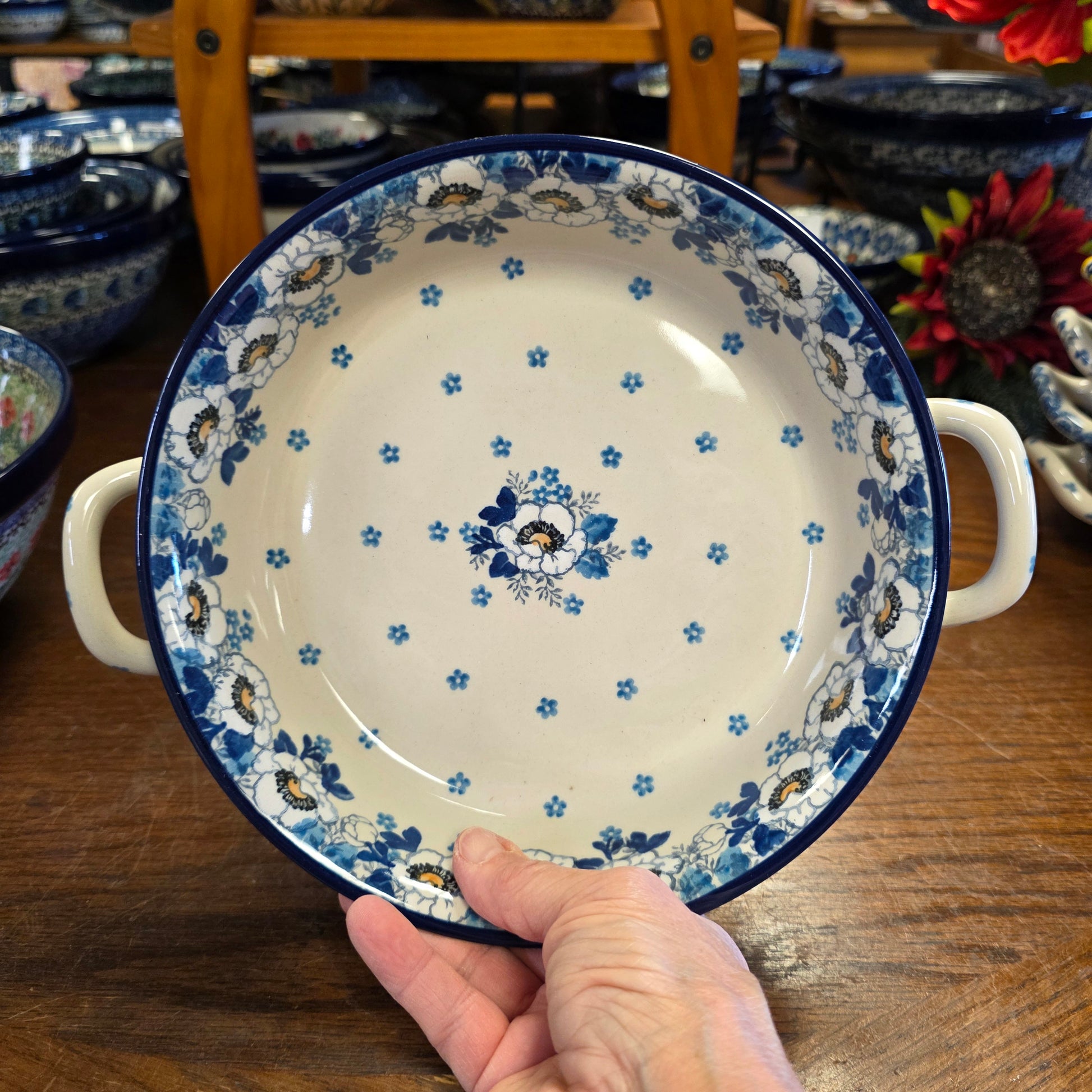 Polish Pottery Baker Round w/ Handles 8" 2222X ~ Snow Poppy