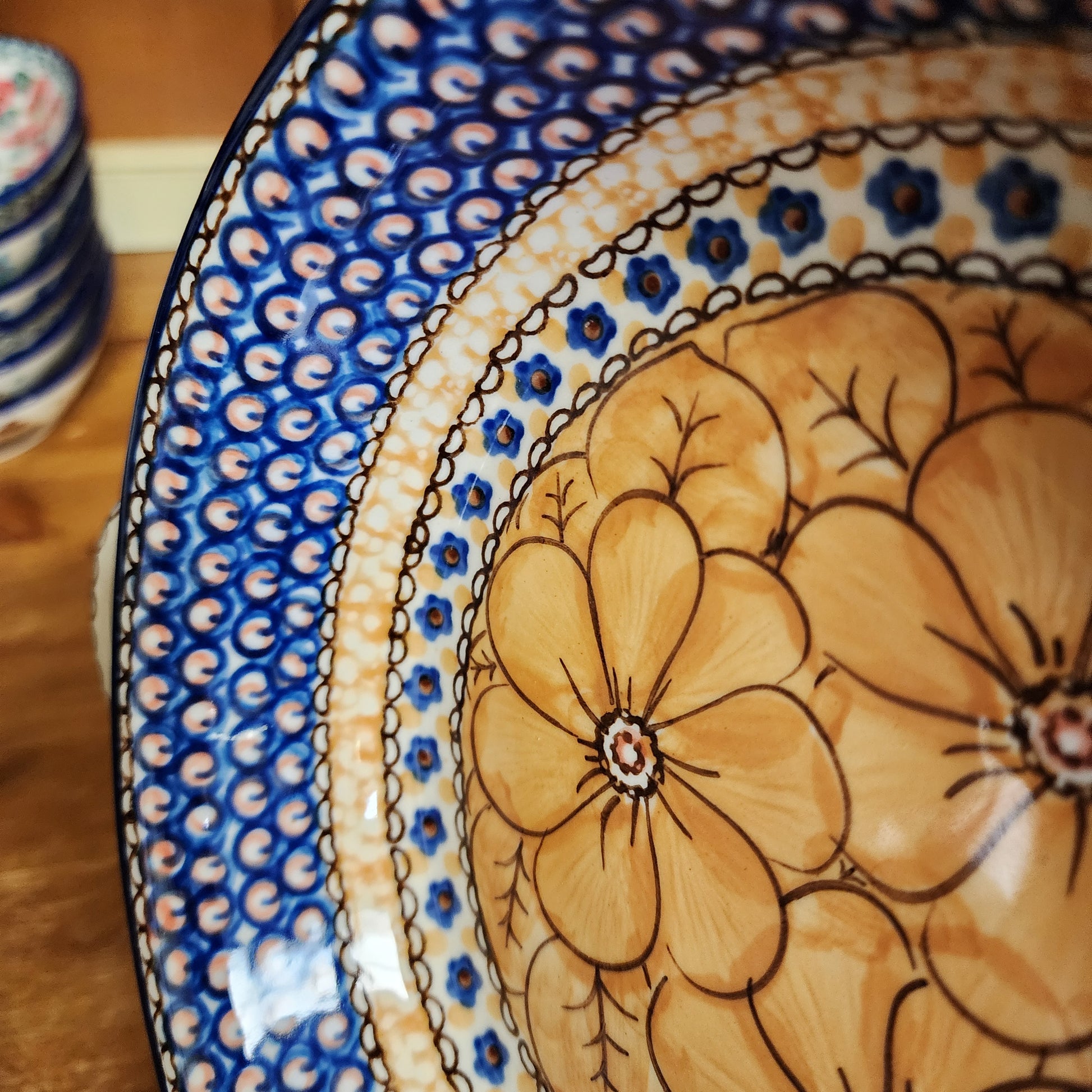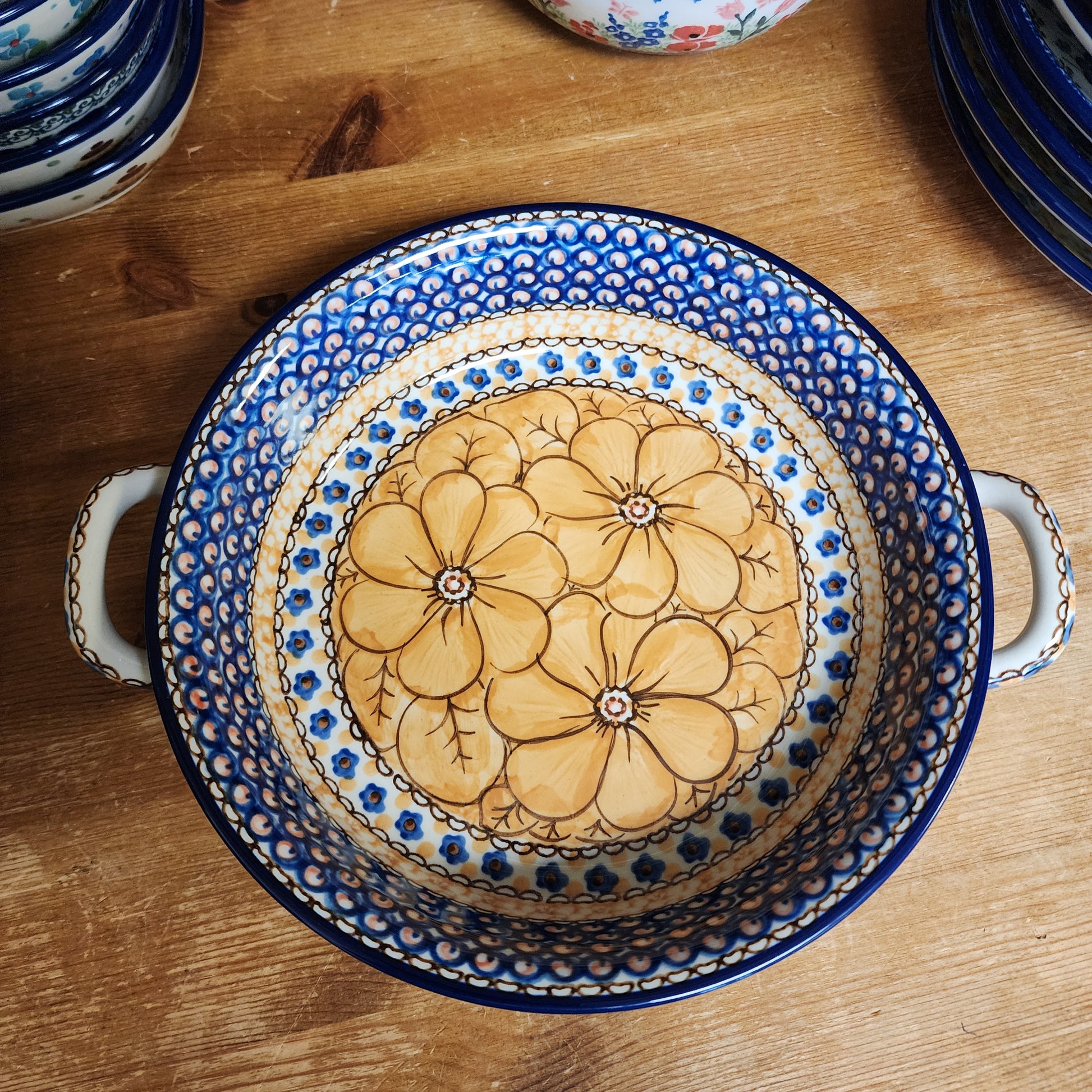 Polish Pottery Baker Round w/ Handles 8" U408B ~ U4