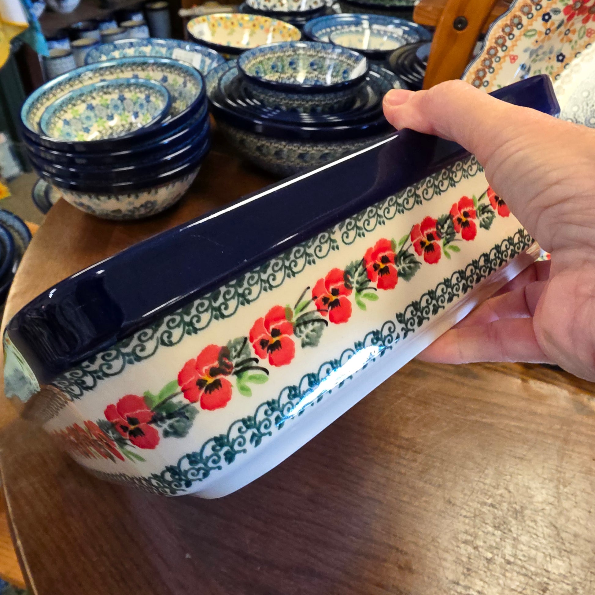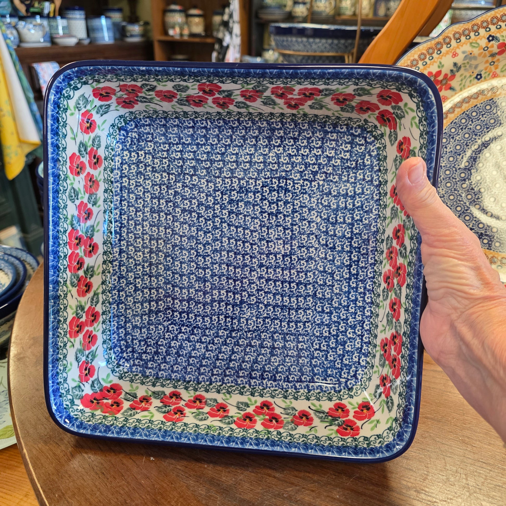 Polish Pottery Baker Square Deep Dish (10.5 in.) 2538X ~ Red Pansy