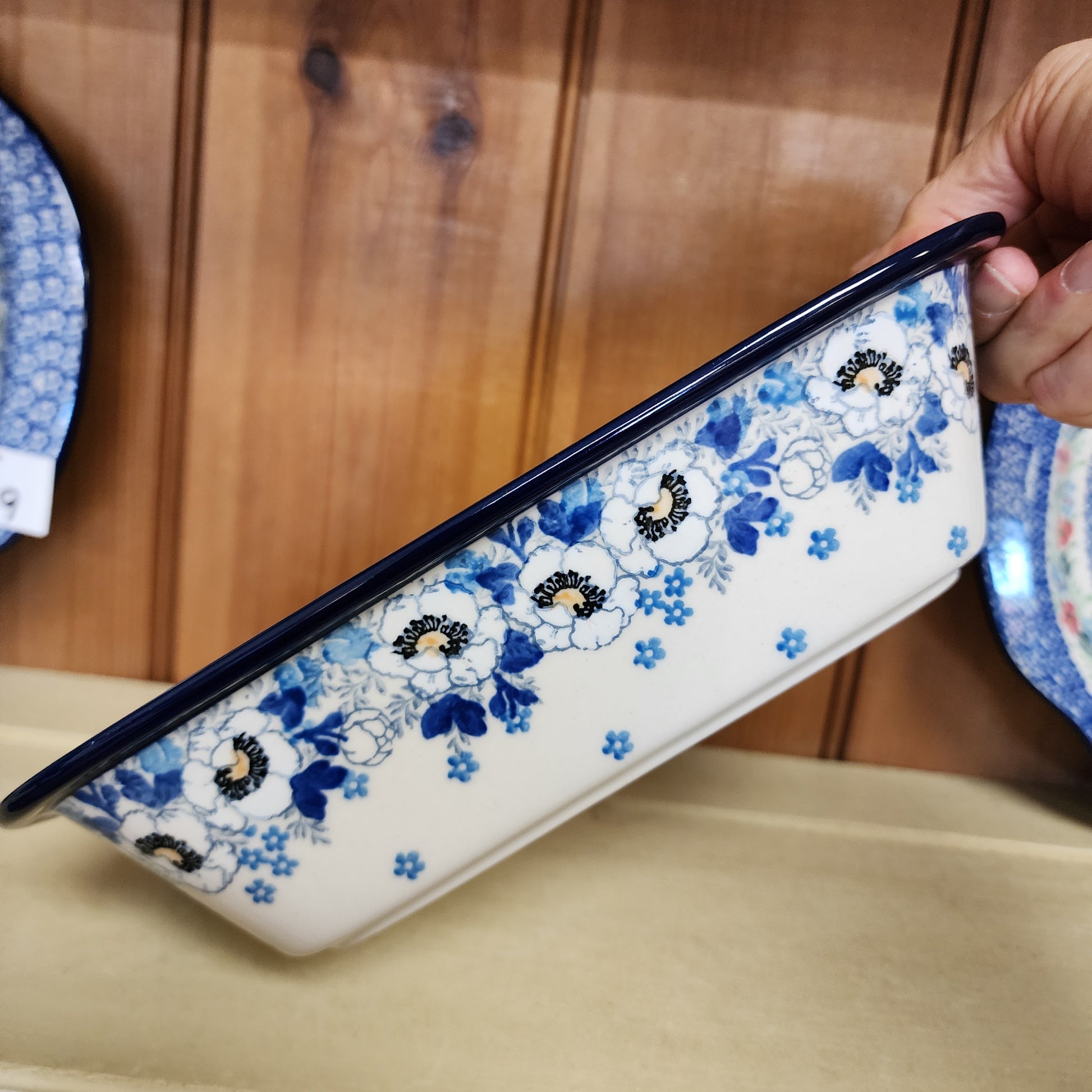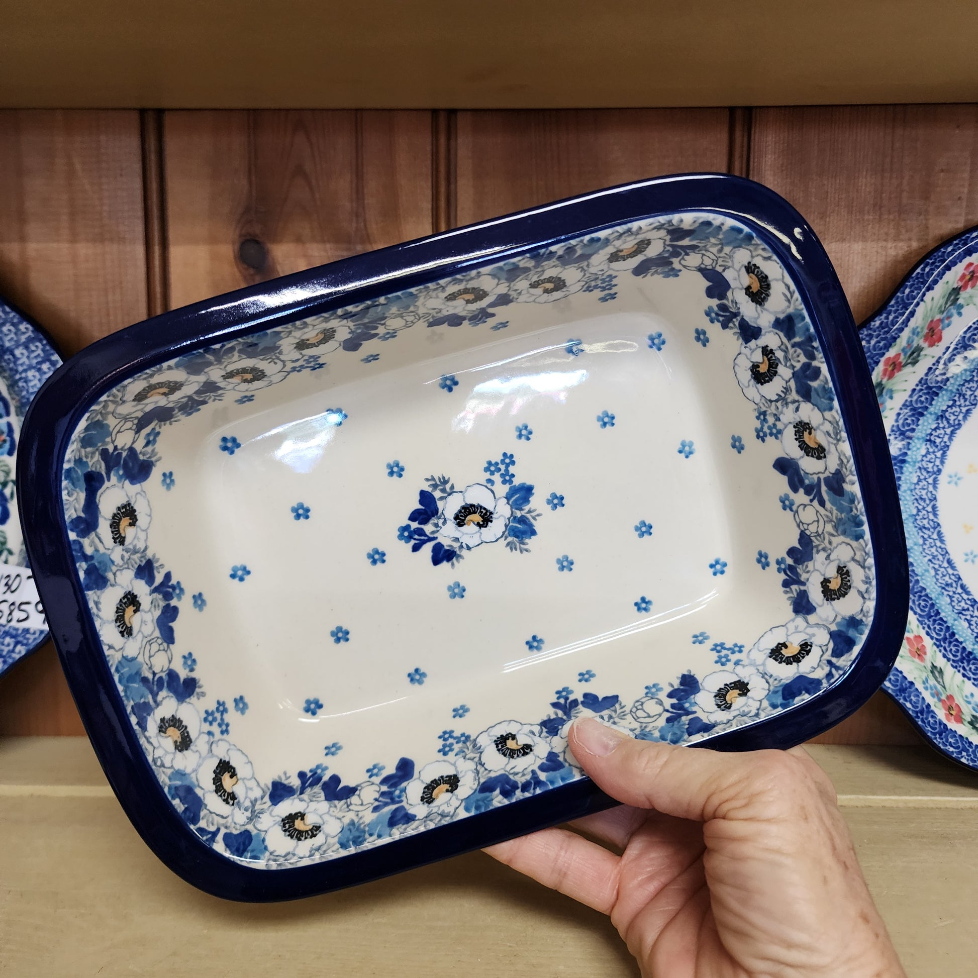 Polish Pottery Baker w/Grip Edge 7" x 9.75" 2222X ~ Snow Poppy