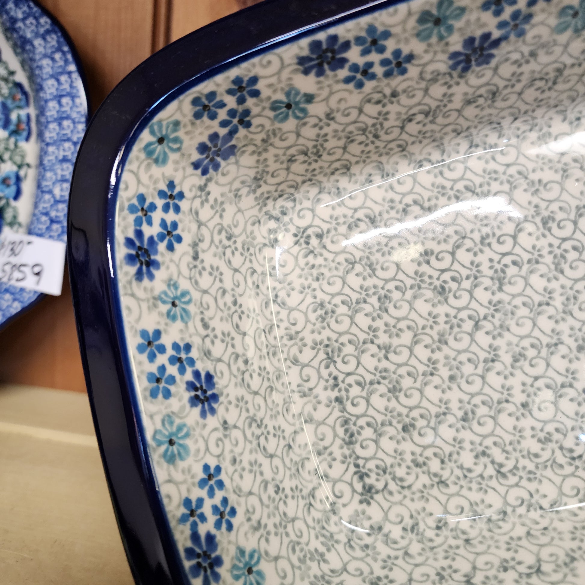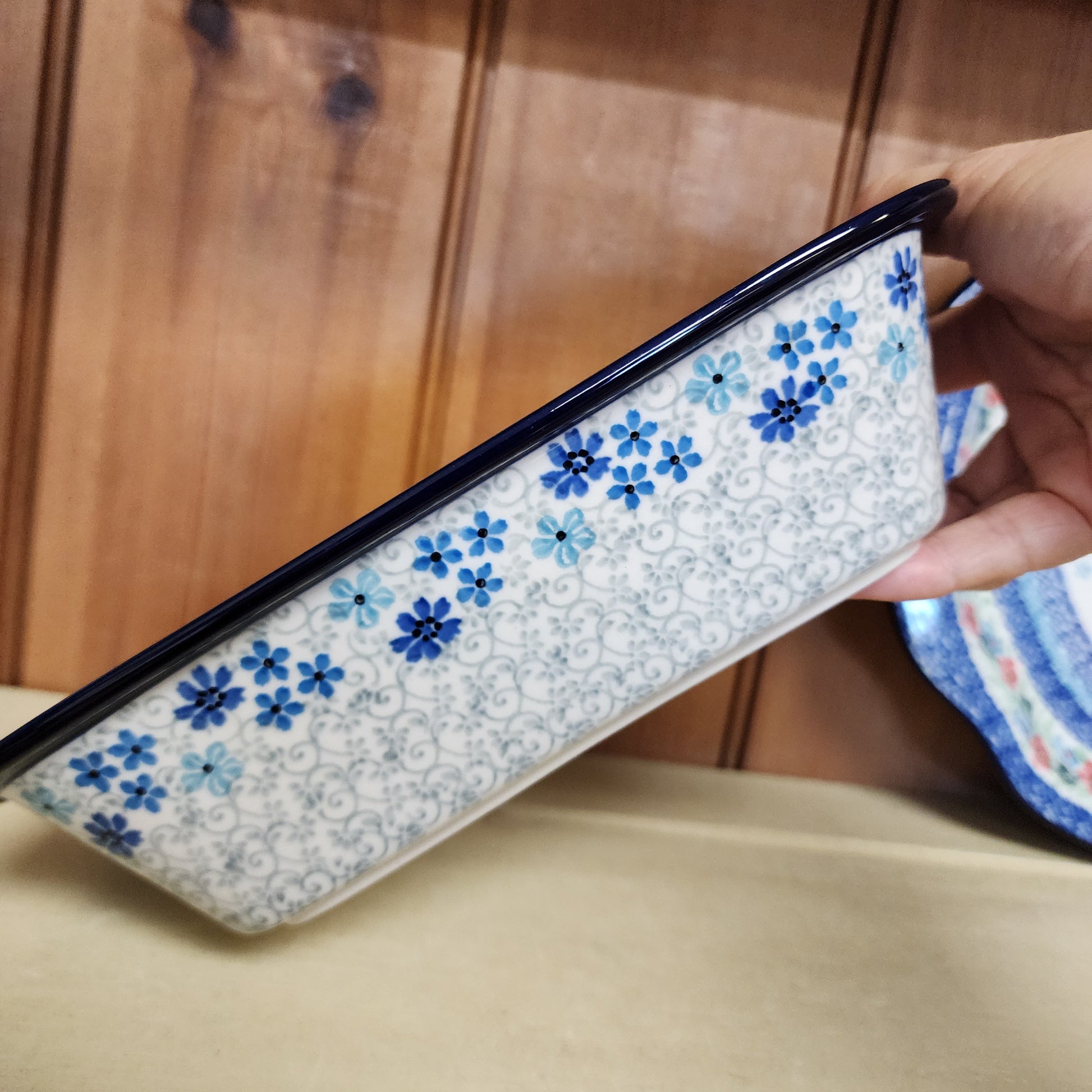 Polish Pottery Baker w/Grip Edge 7" x 9.75" 2612X ~ Sea Blossom