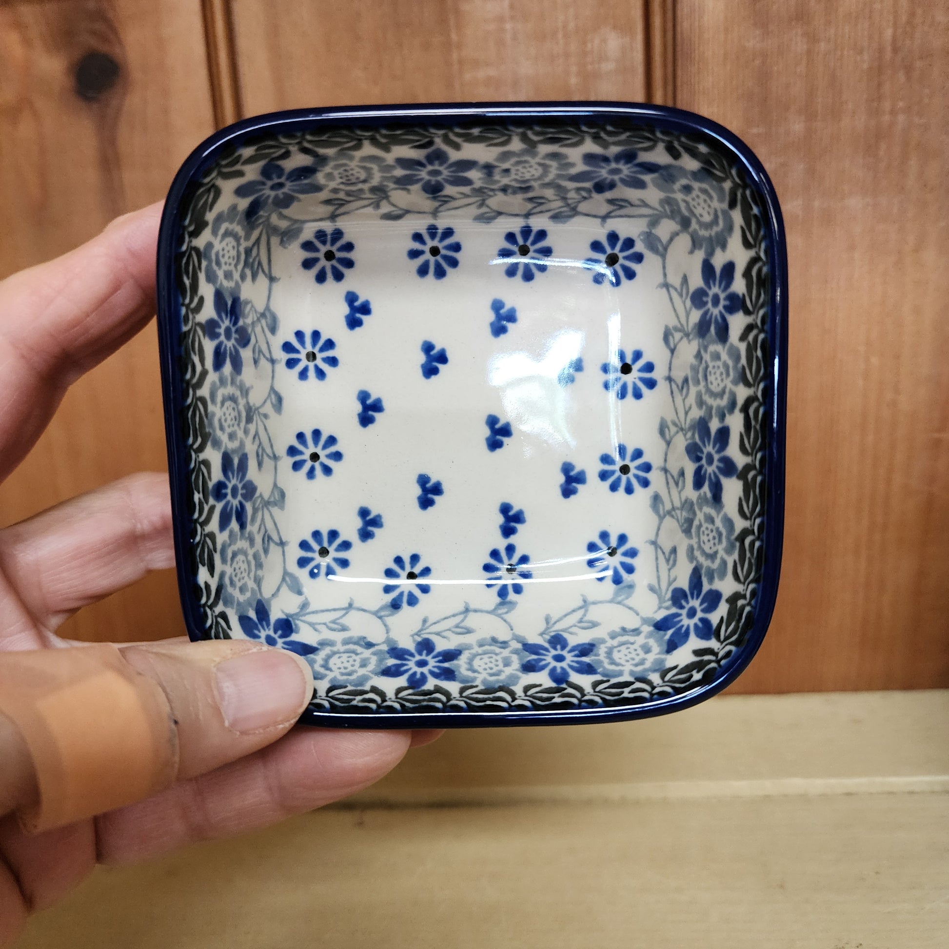 Polish Pottery Bowl Square Ramekin 3.75" 2158X ~ Silver Lace