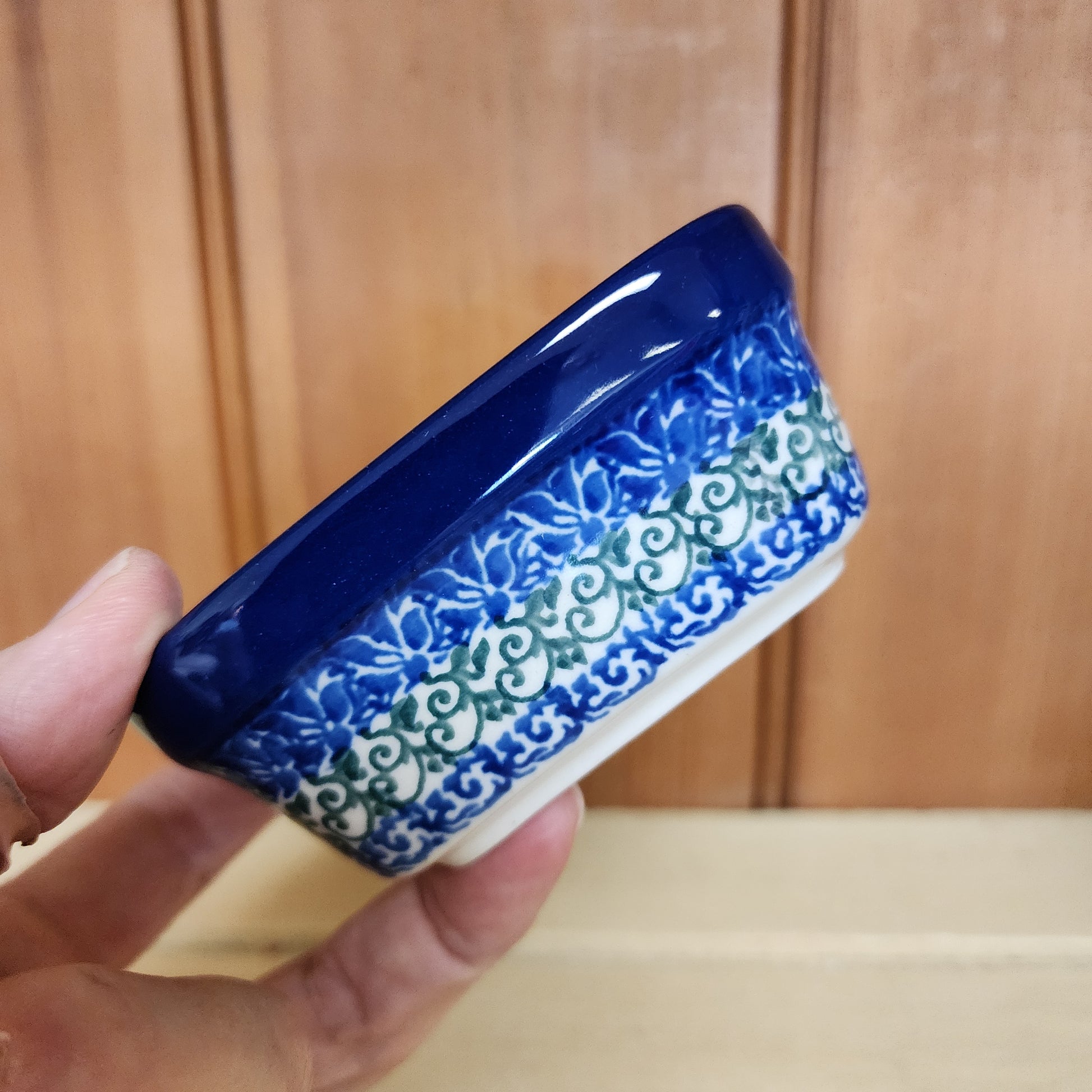 Polish Pottery Bowl Square Ramekin 3.75" 2538X ~ Red Pansy