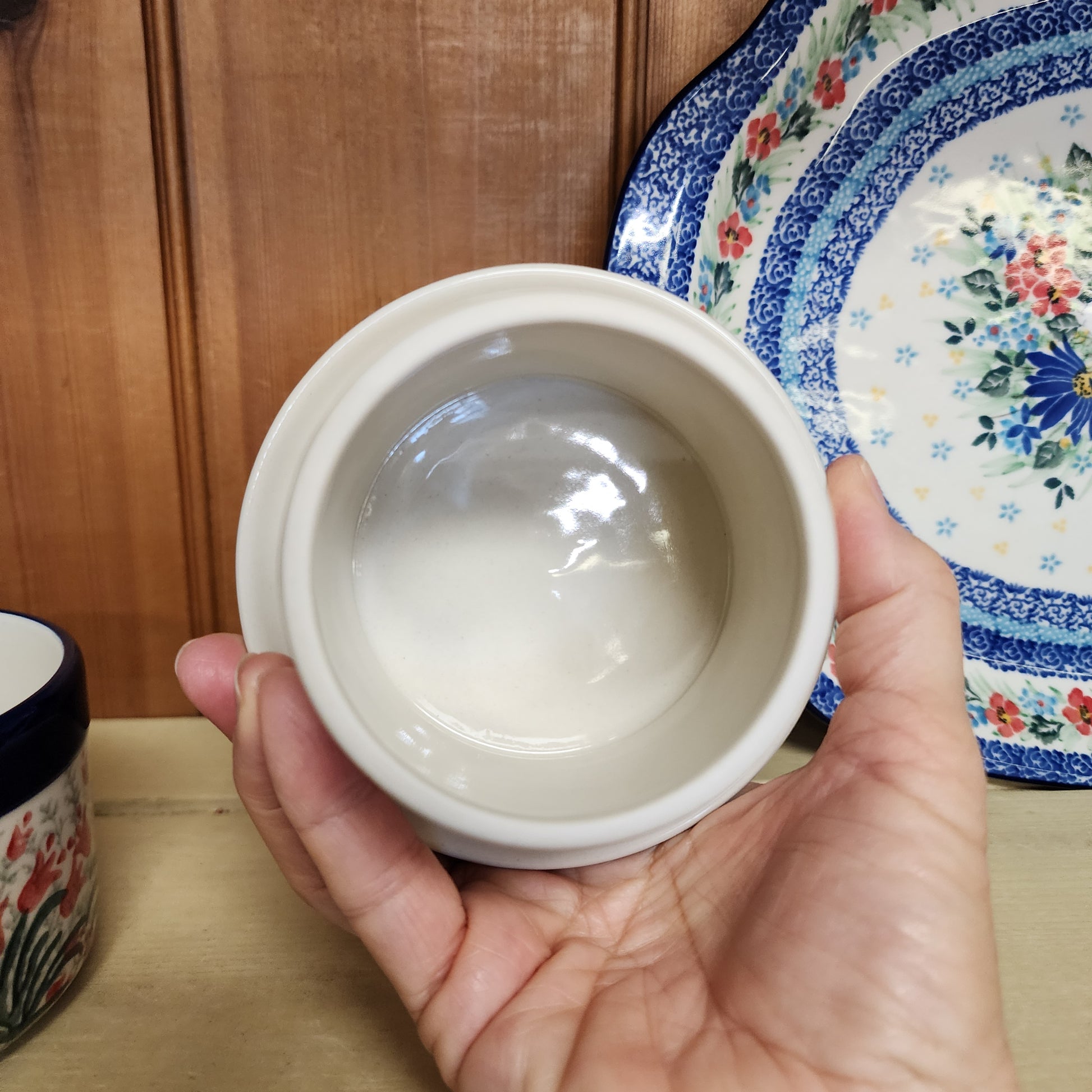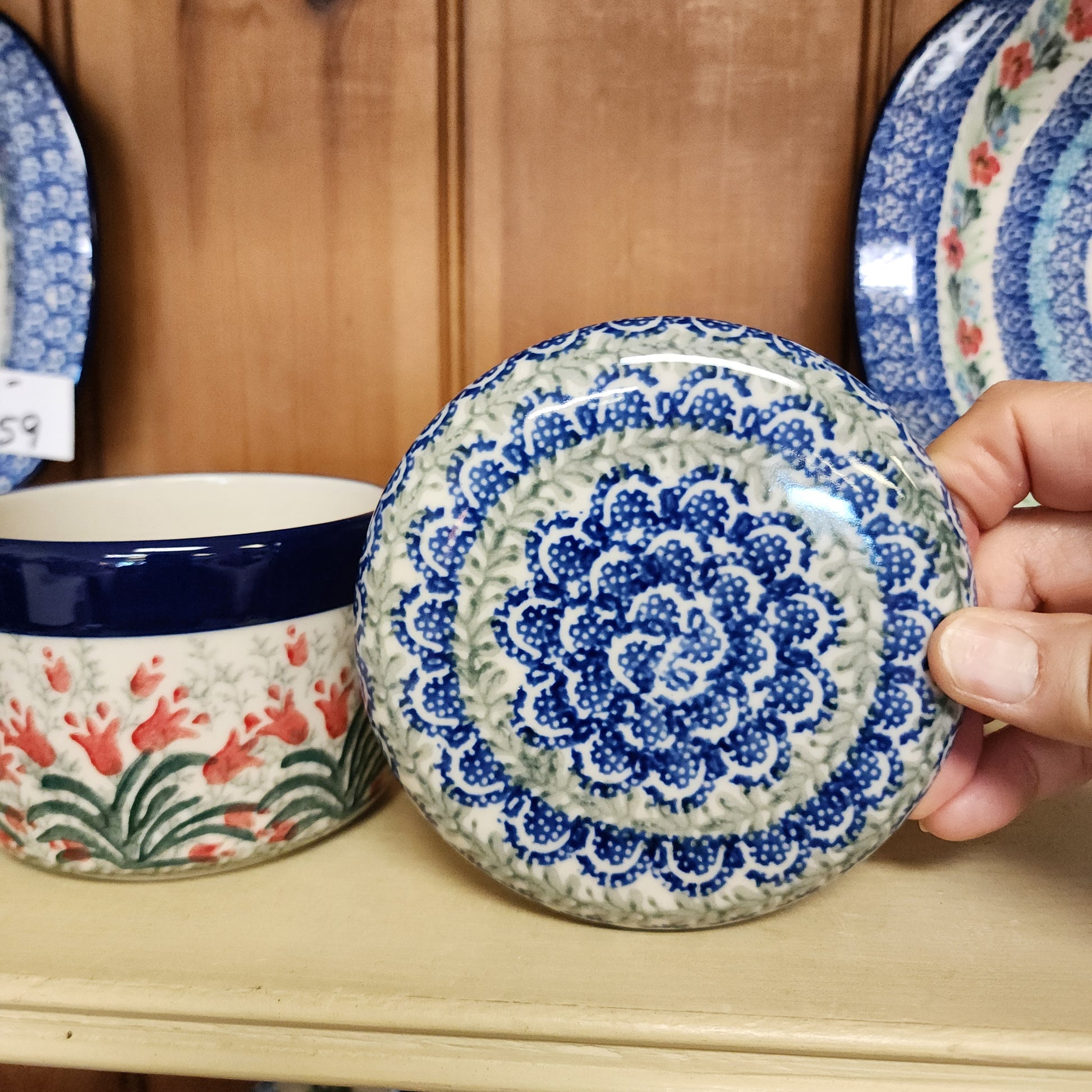 Polish Pottery Butter Bell 3.75"W x 3"H 1437X ~ Crimson Bells