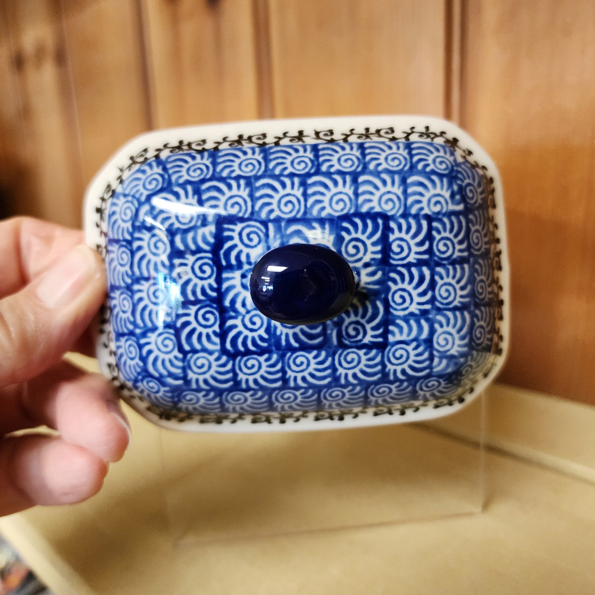 Polish Pottery Covered Container 3.25"H x 3.5"W x 4.5"L 1916X ~ Maraschino