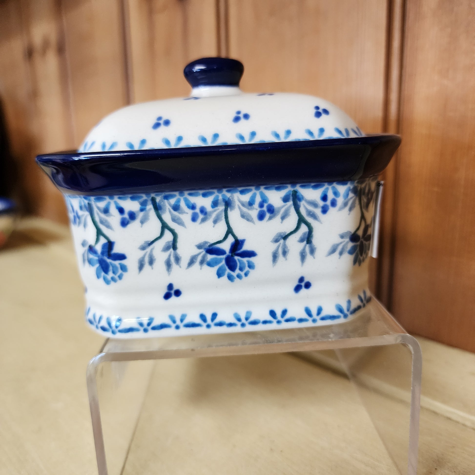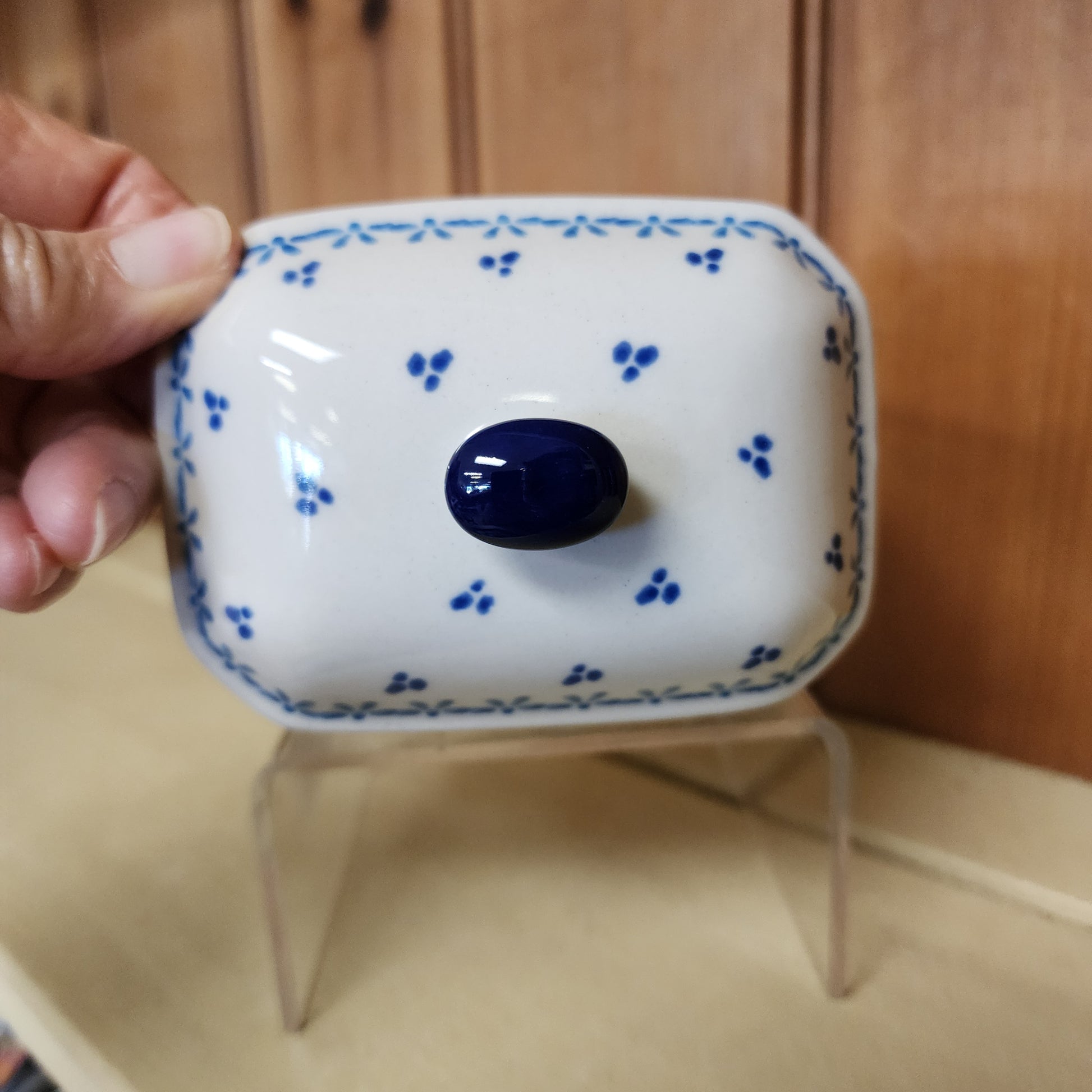Polish Pottery Covered Container 3.25"H x 3.5"W x 4.5"L 2524X ~ Clover Fields