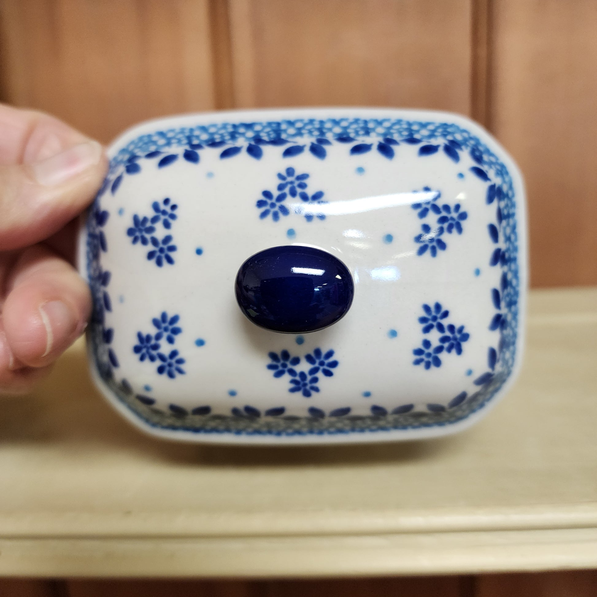 Polish Pottery Covered Container 3.25"H x 3.5"W x 4.5"L 2856X ~ Buddy