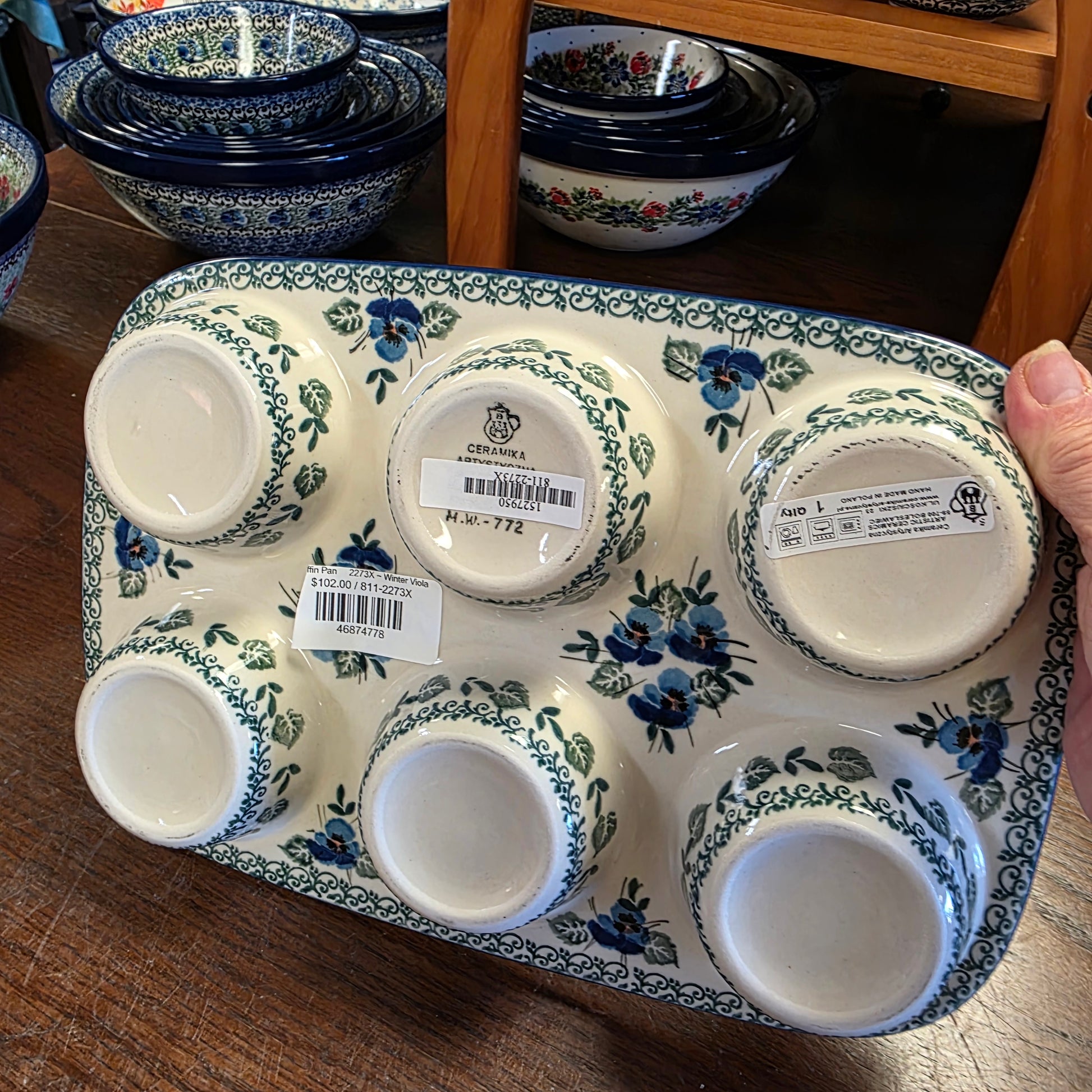 Polish Pottery Muffin Pan 2273X ~ Winter Viola