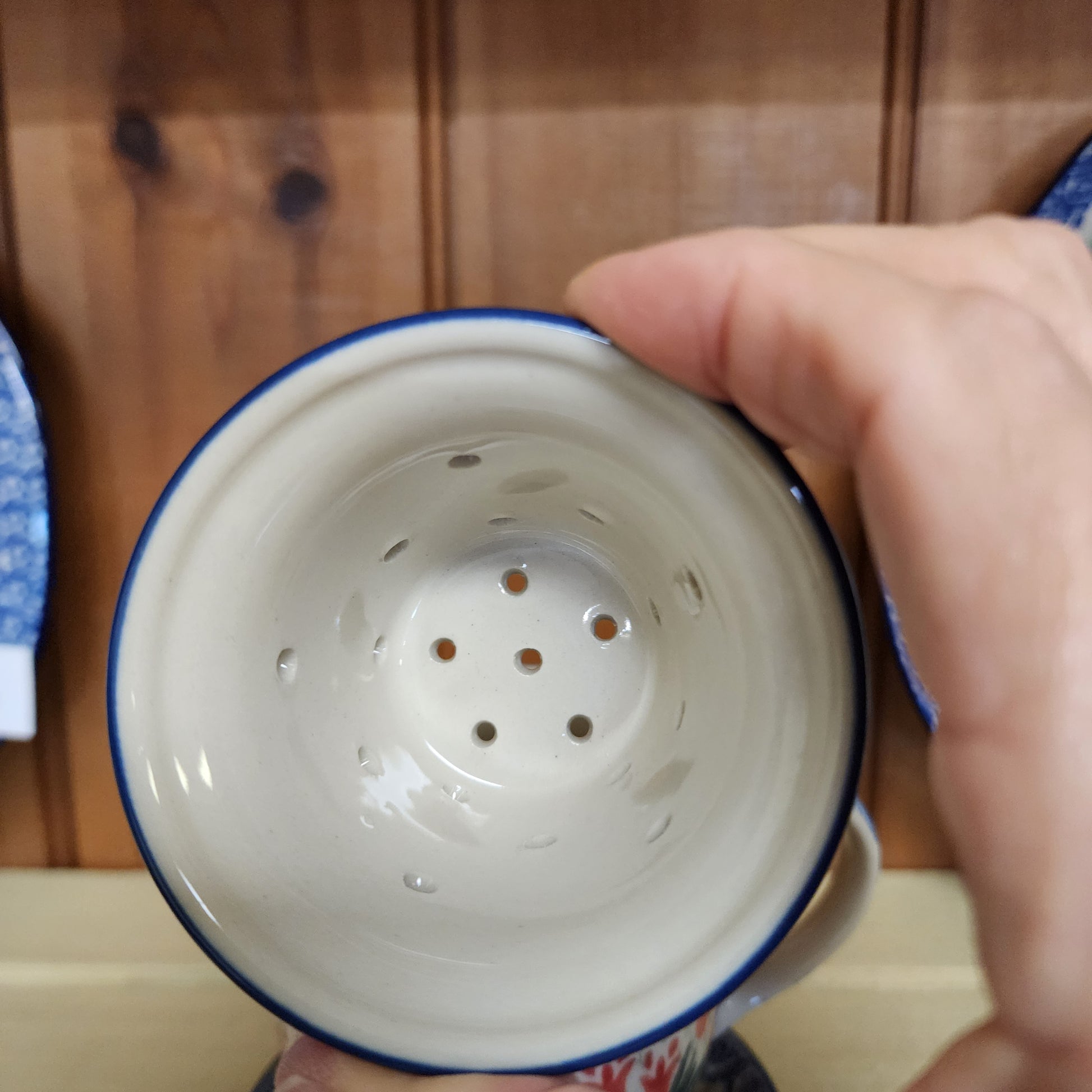 Polish Pottery Mug w/Infuser and Saucer 12 oz. 1437X ~ Crimson Bells