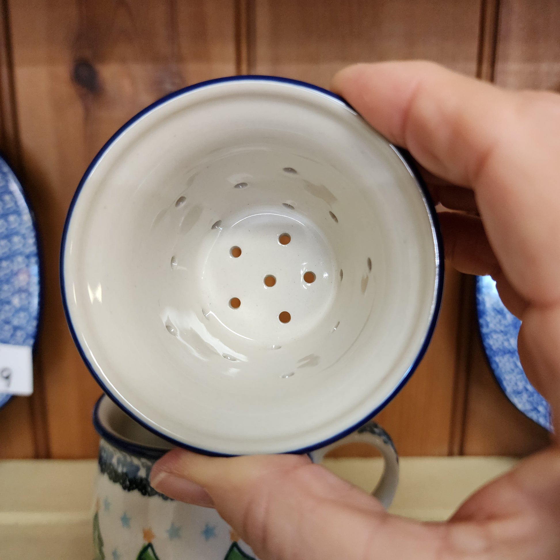 Polish Pottery Mug w/Infuser and Saucer 12 oz. 1719X ~ Evergreens