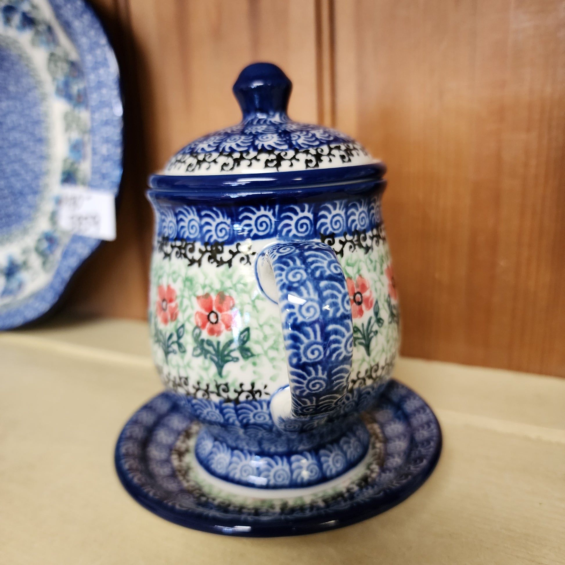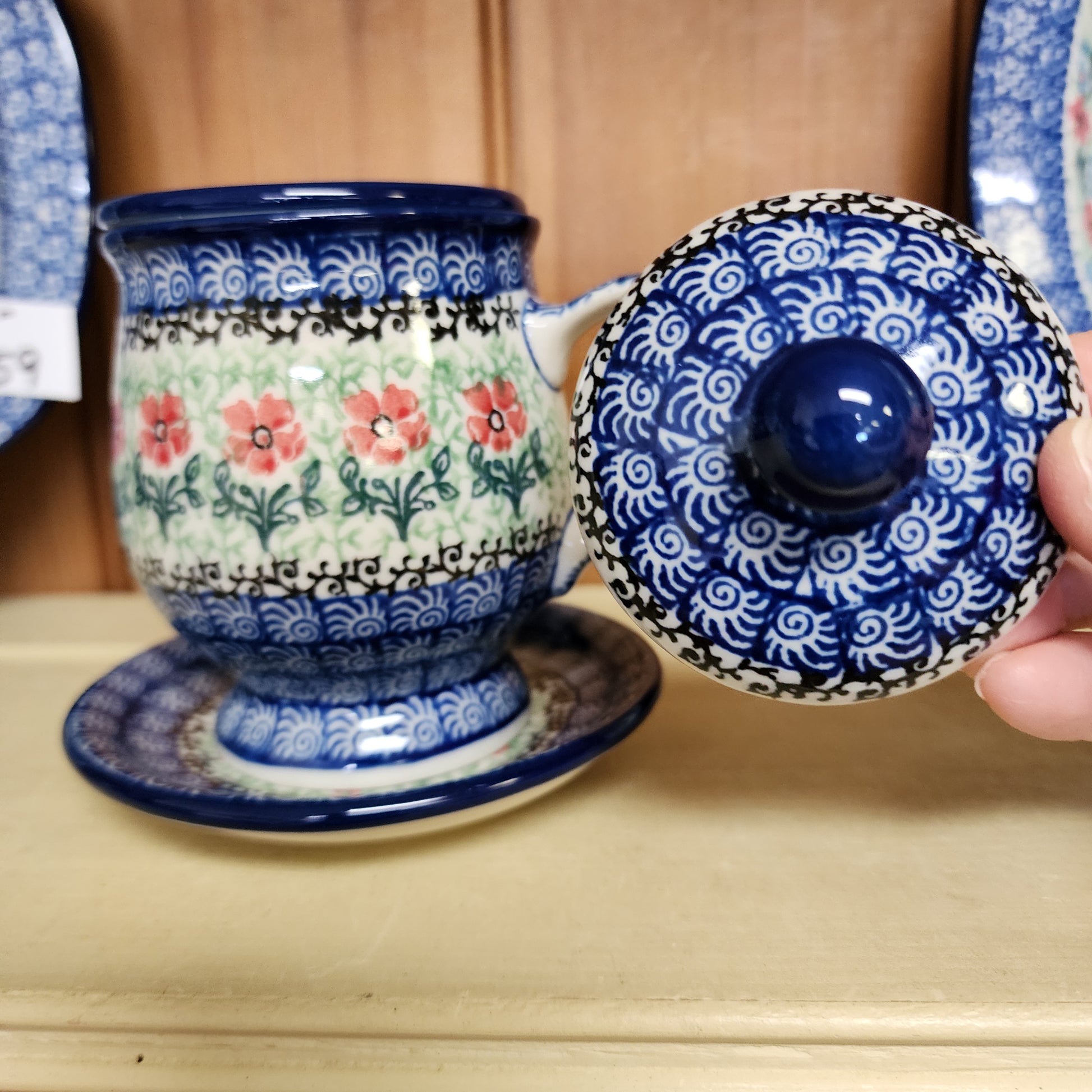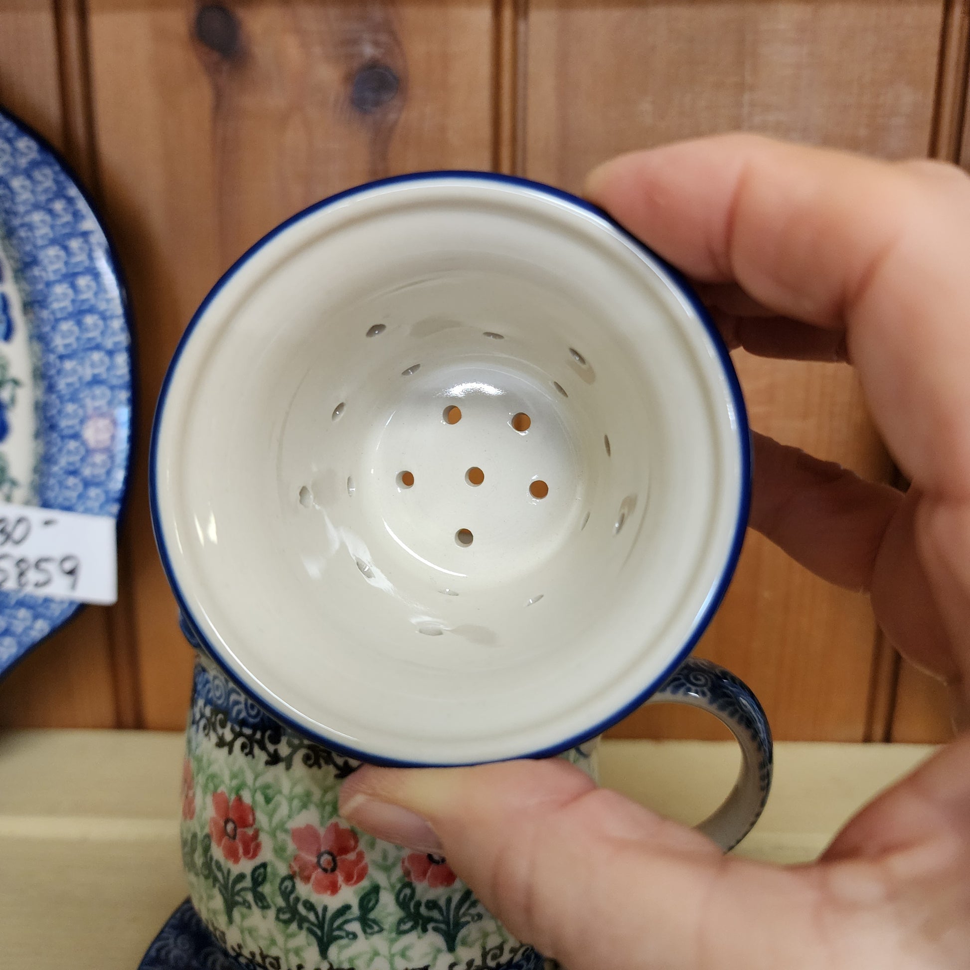 Polish Pottery Mug w/Infuser and Saucer 12 oz. 1916X ~ Maraschino