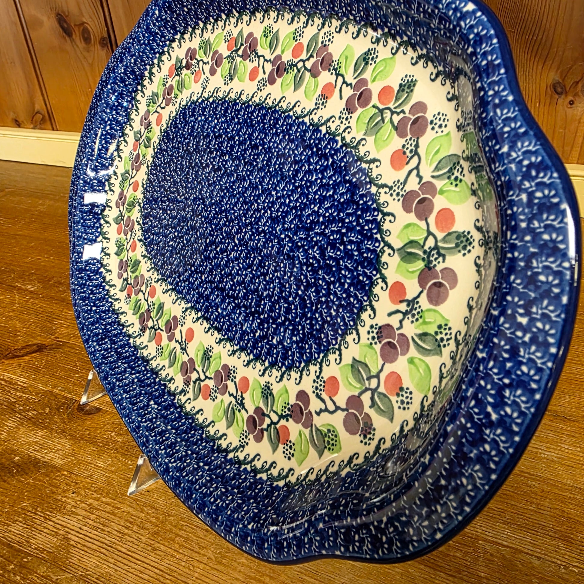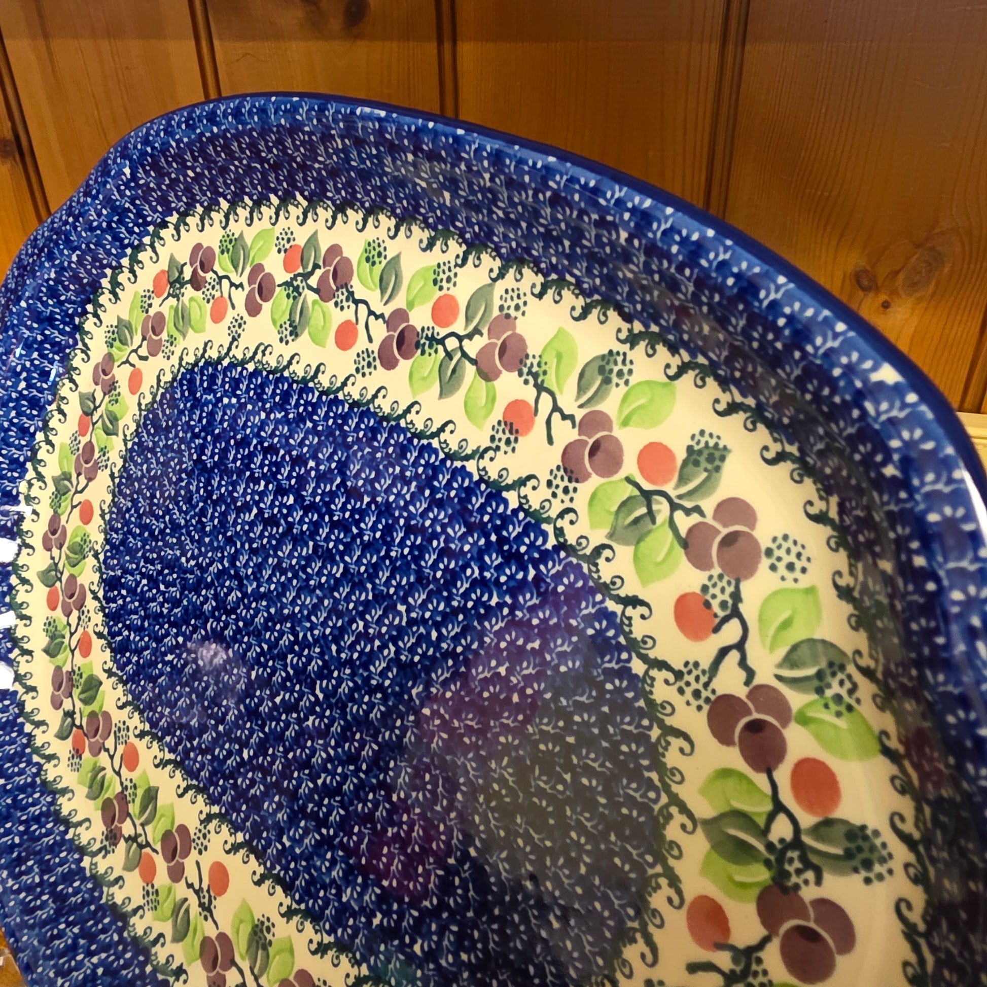 Polish Pottery Platter Oval 11.5" x 15.5" 1418X ~ Burgandy Berry Blue