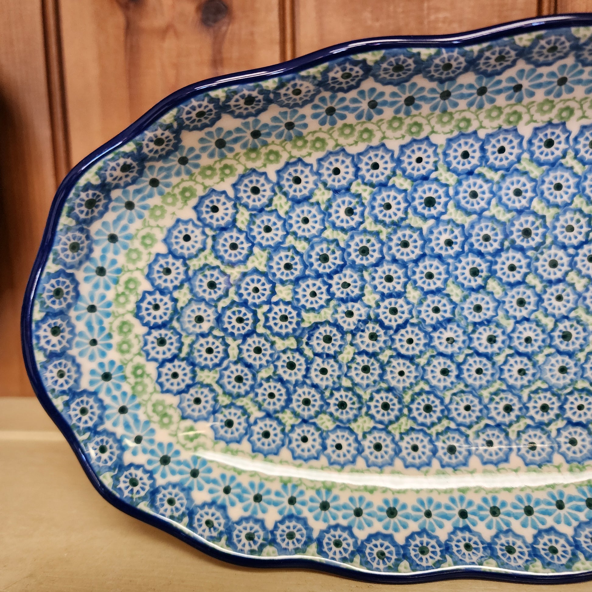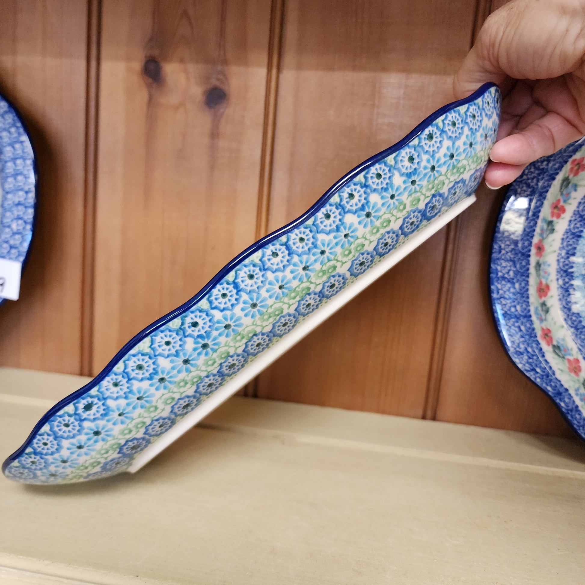 Polish Pottery Tray Scalloped Oval 6.25" x 12.5" 3274x Sea Glass