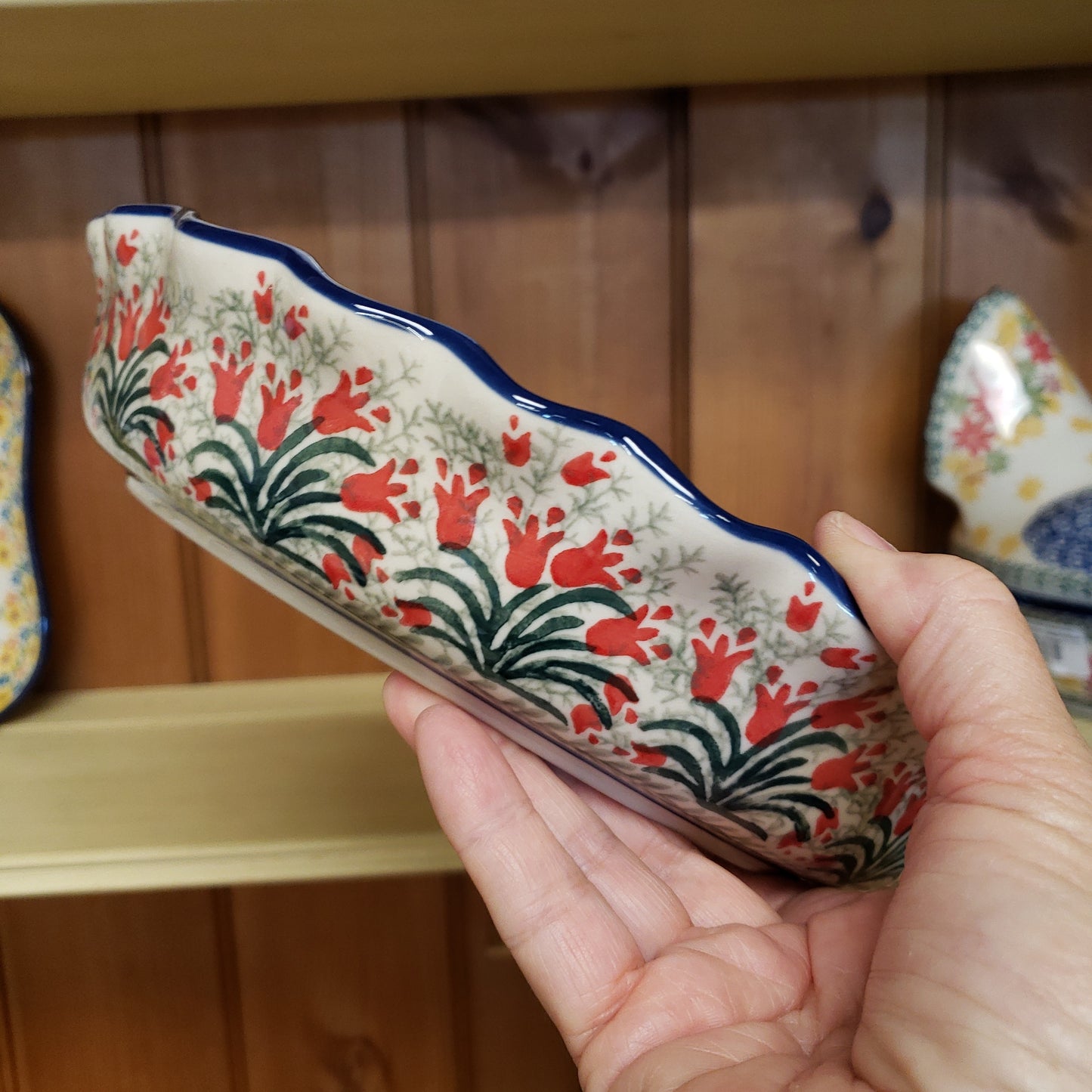 Polish Pottery Pie Plate ~ Fluted ~ 10" 636~1437X ~ Crimson Bells PF0323