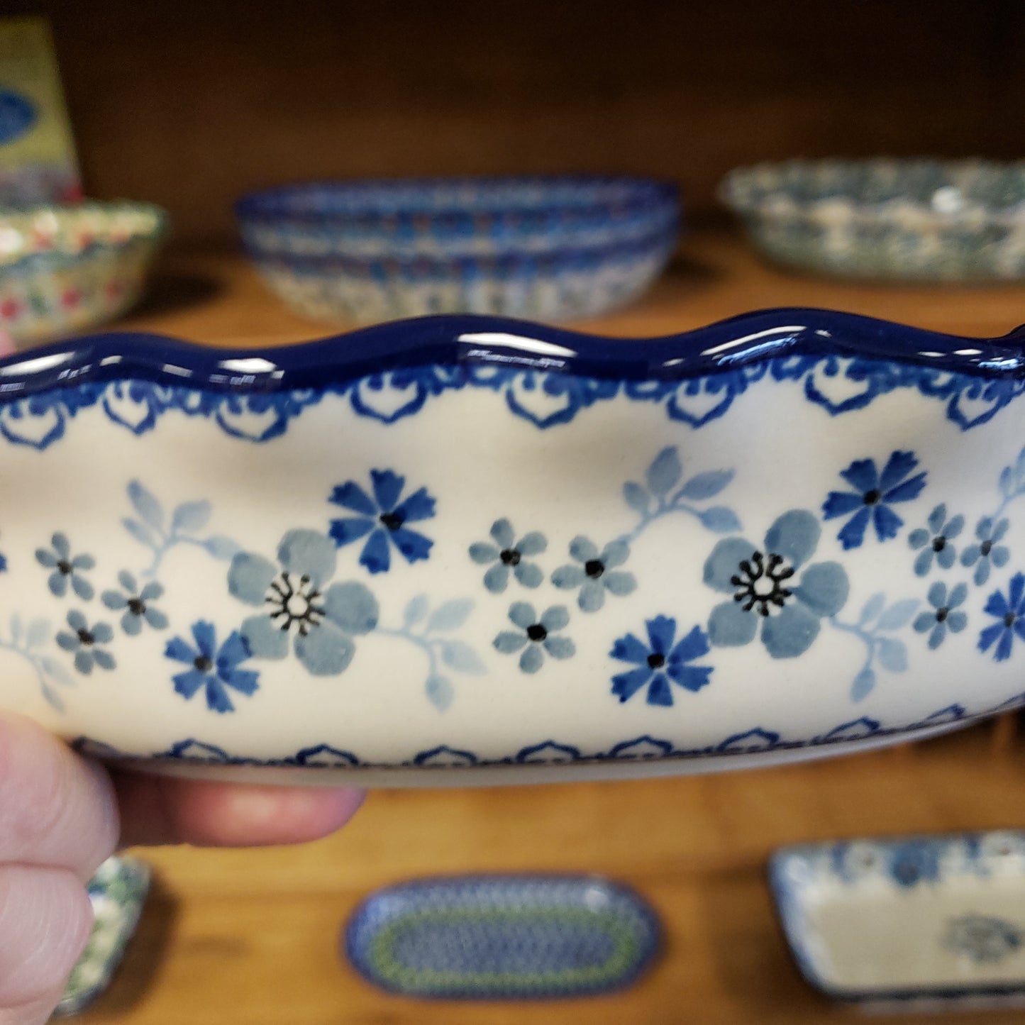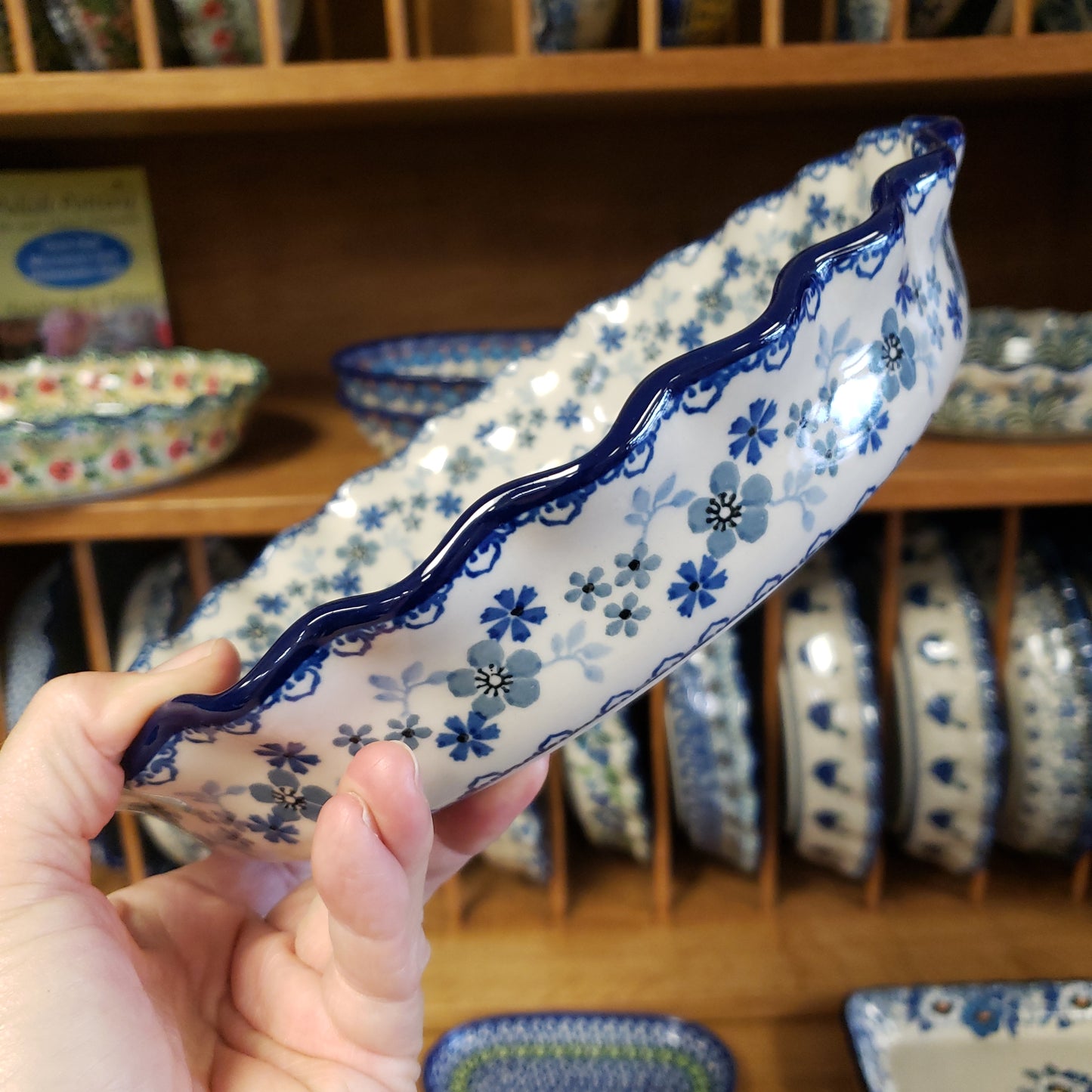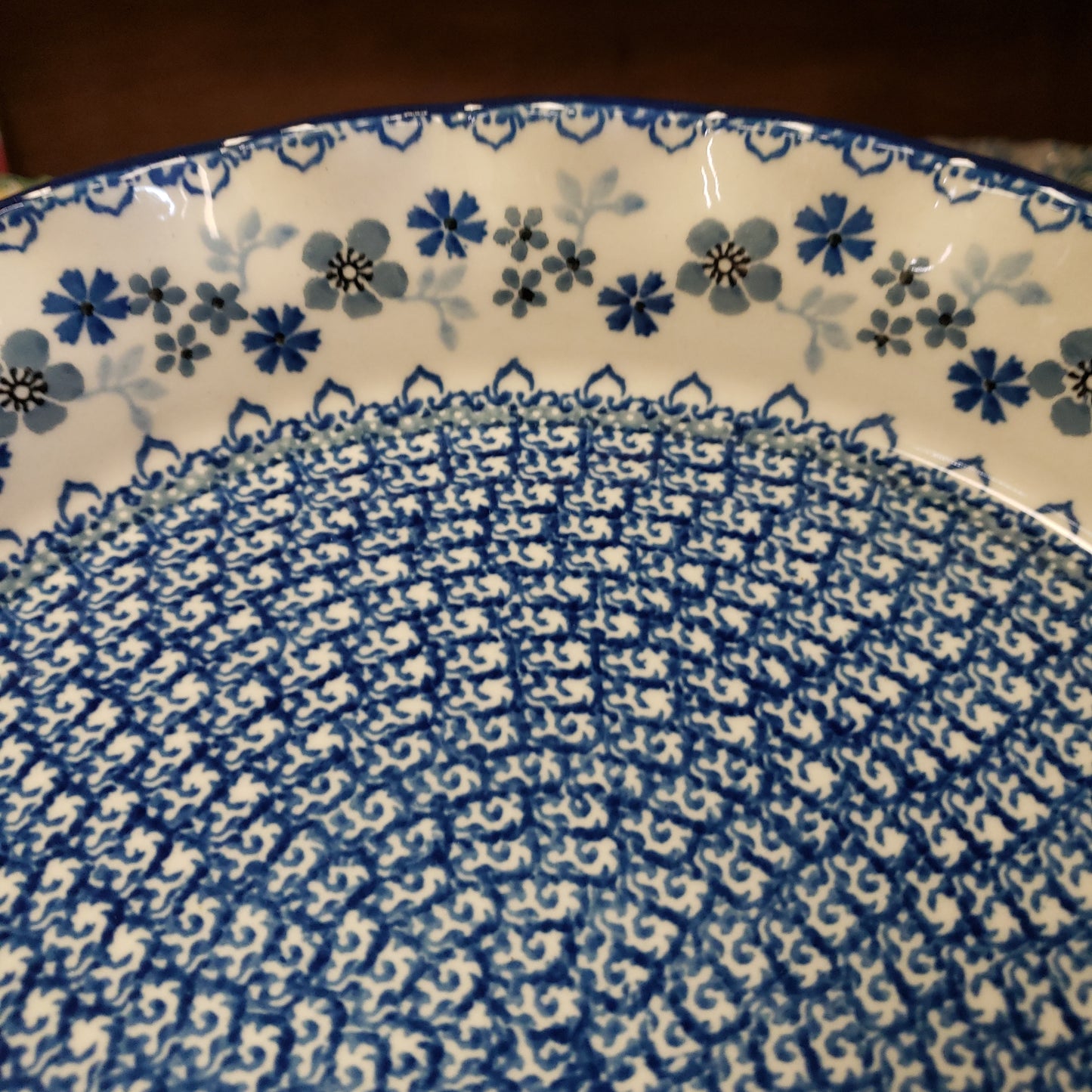 Polish Pottery Pie Plate ~ Fluted ~ 10" 636~2333X ~ Blue Horizon PF0323