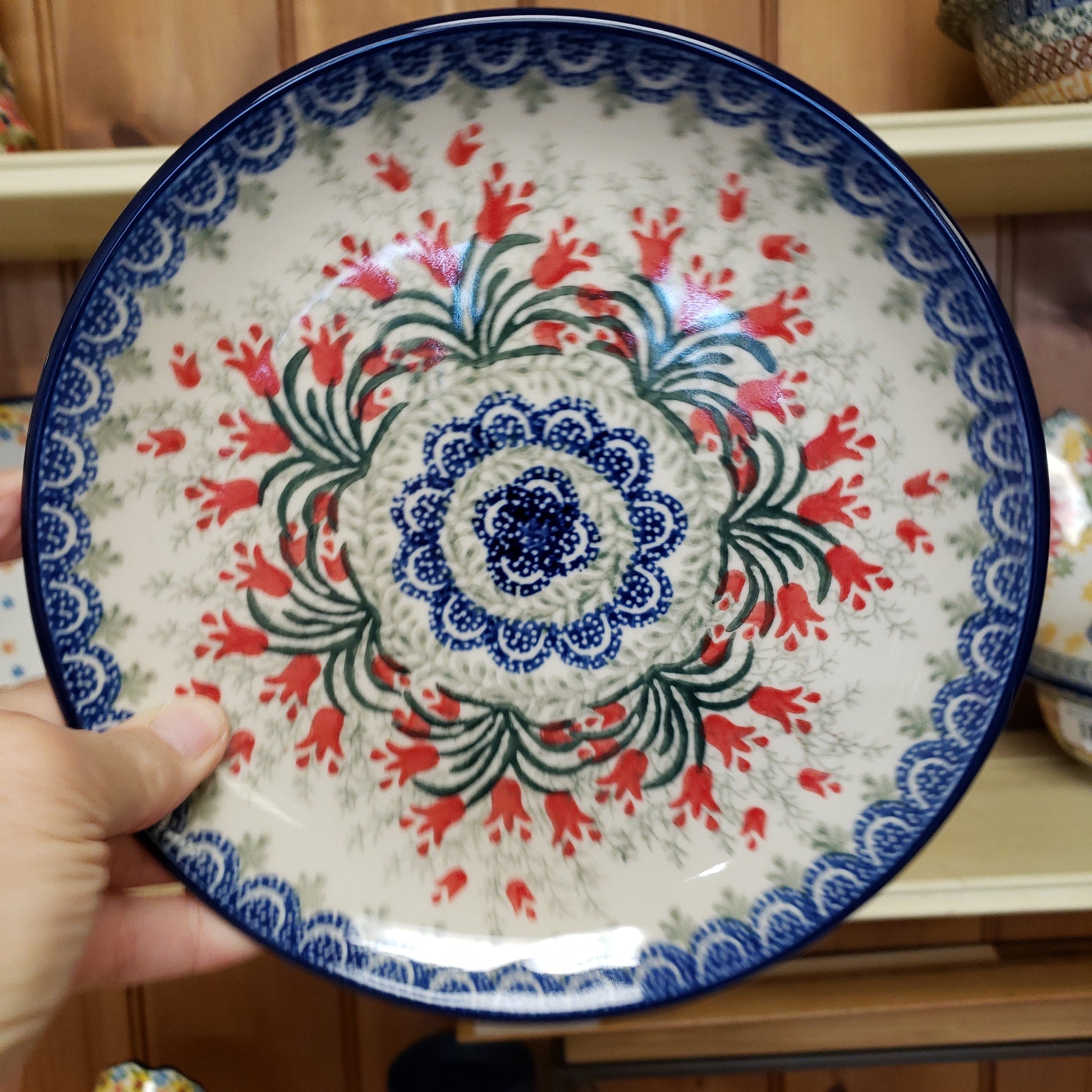 Polish Pottery Plate ~ 7.75" 86~1437X ~ Crimson Bells PF0323