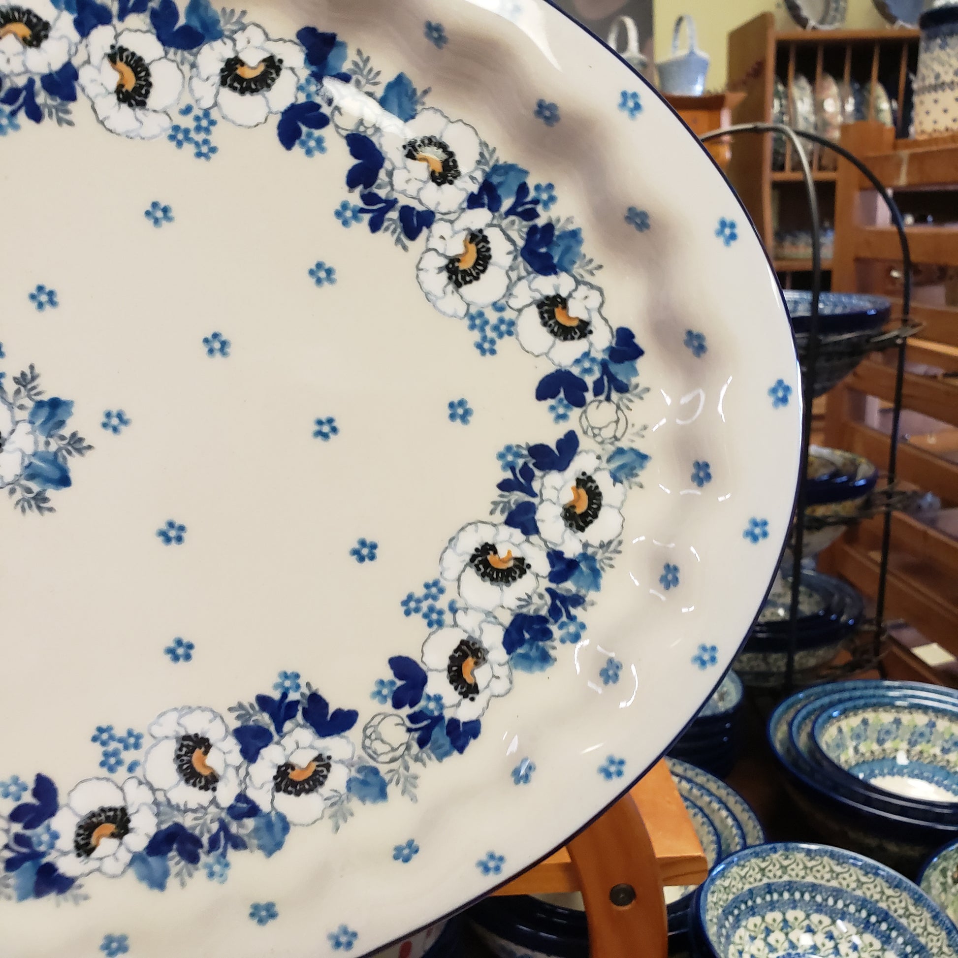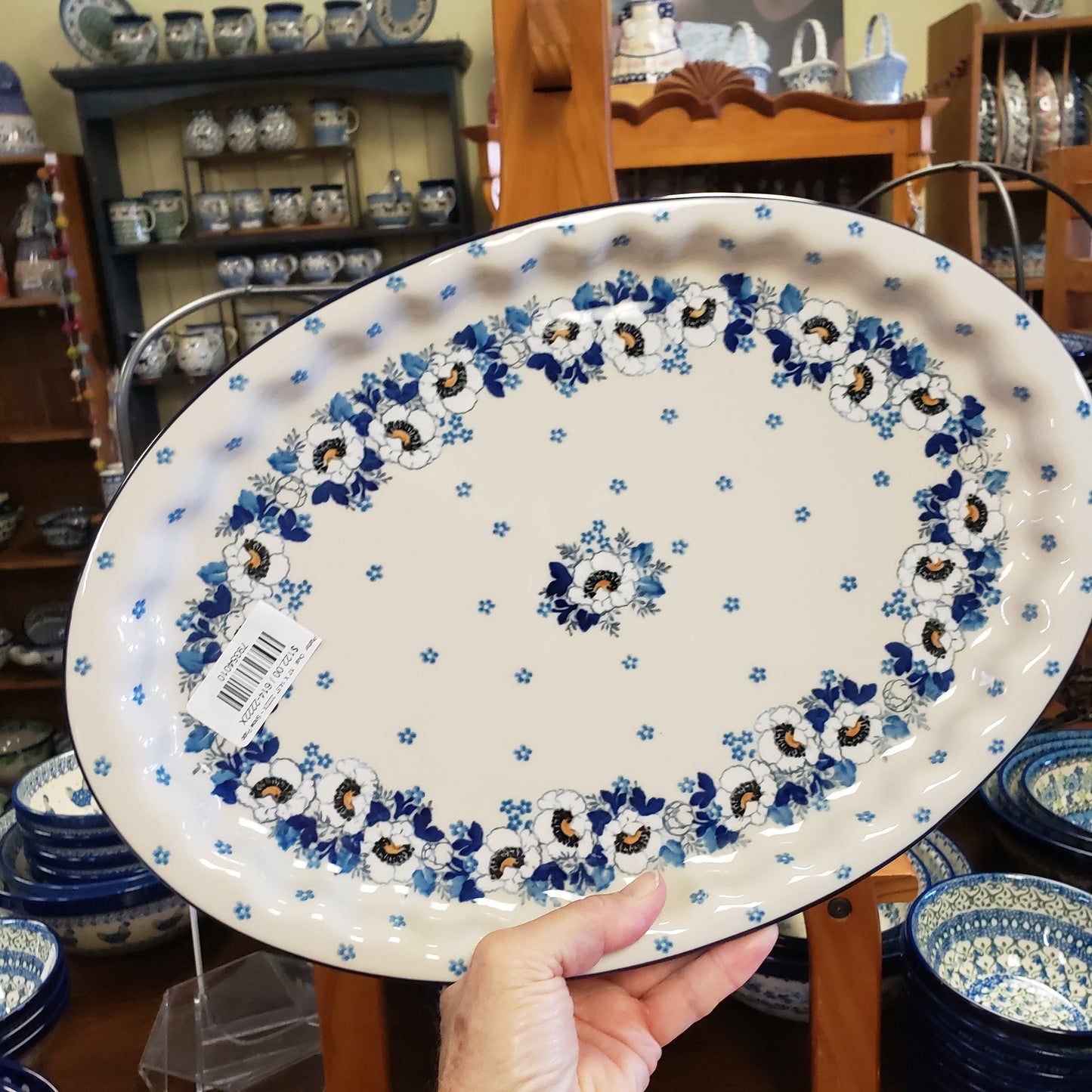 Polish Pottery Platter Oval 10' X 14.5" 2222X ~ Snow Poppy PF1024