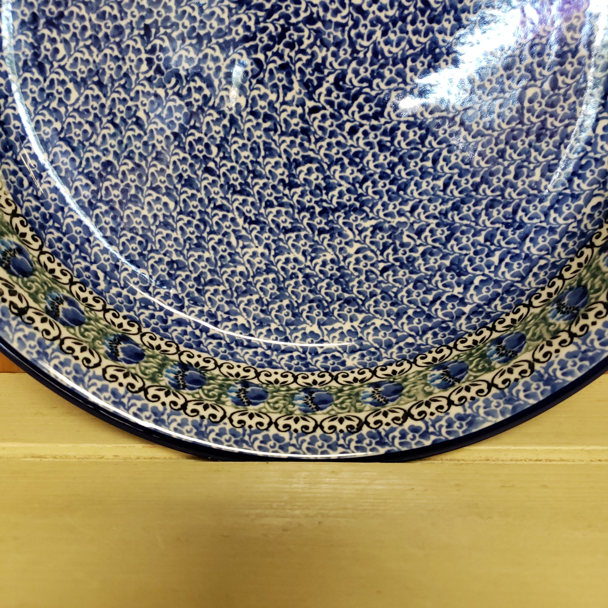 Polish Pottery Baker ~ Round w/ Handles ~ 10" 420-1513X Peacock Feather PF11