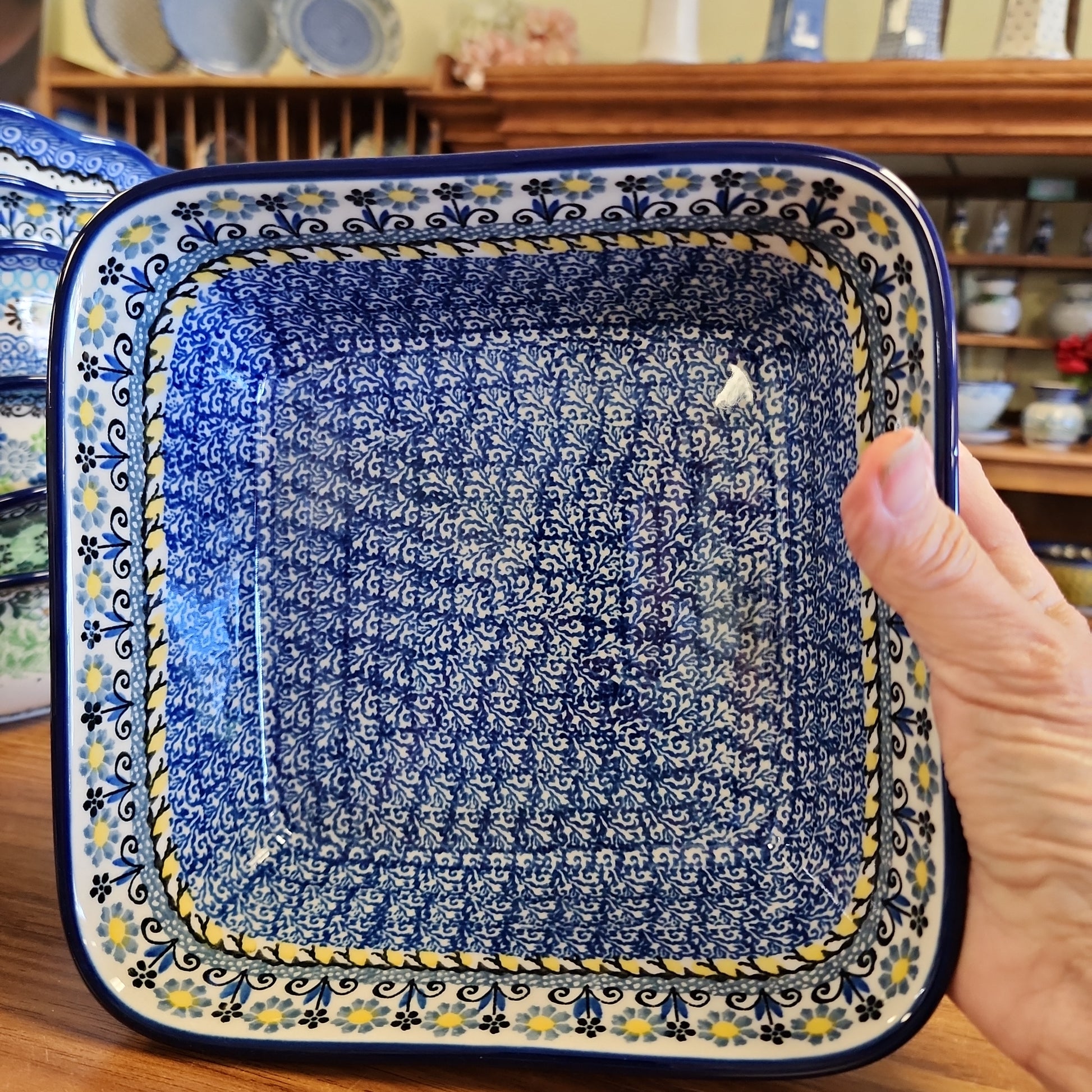 Polish Pottery Baker ~ Square Deep Dish ~ 7.75" 430-2178X ~ Daisy Maize