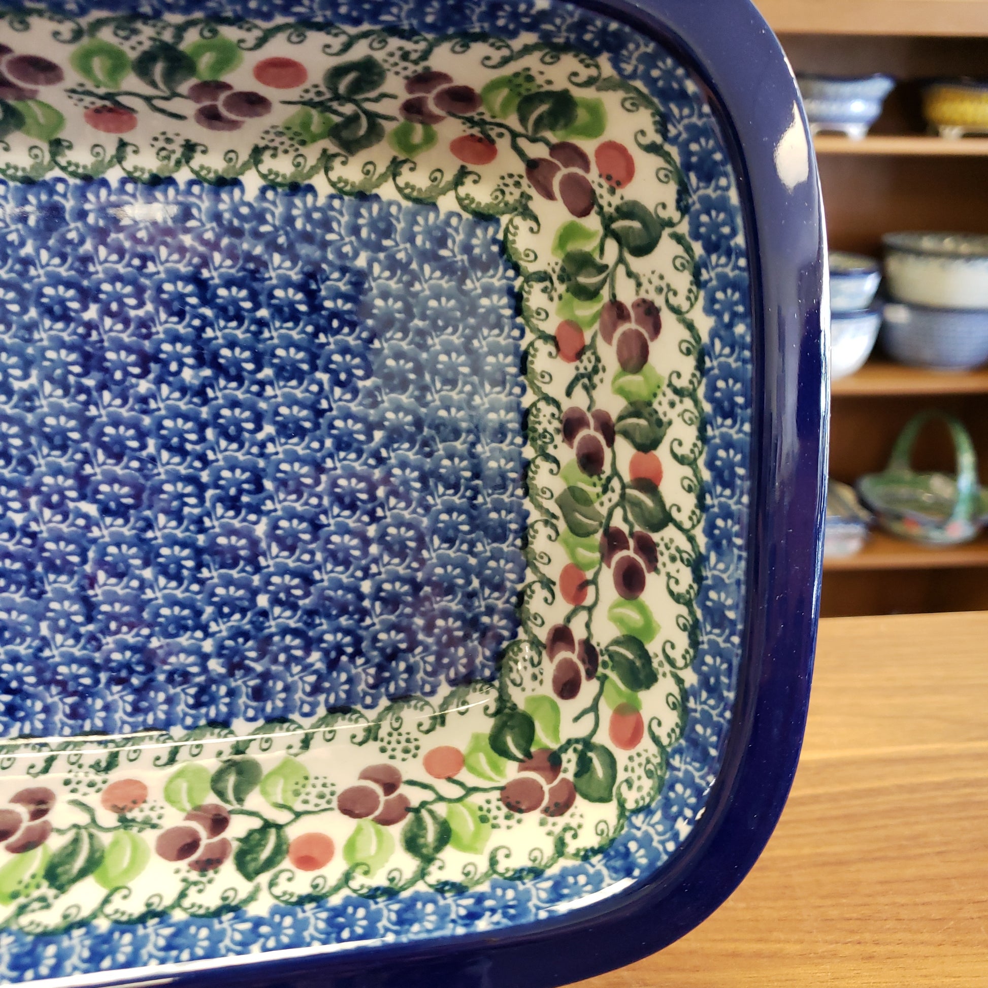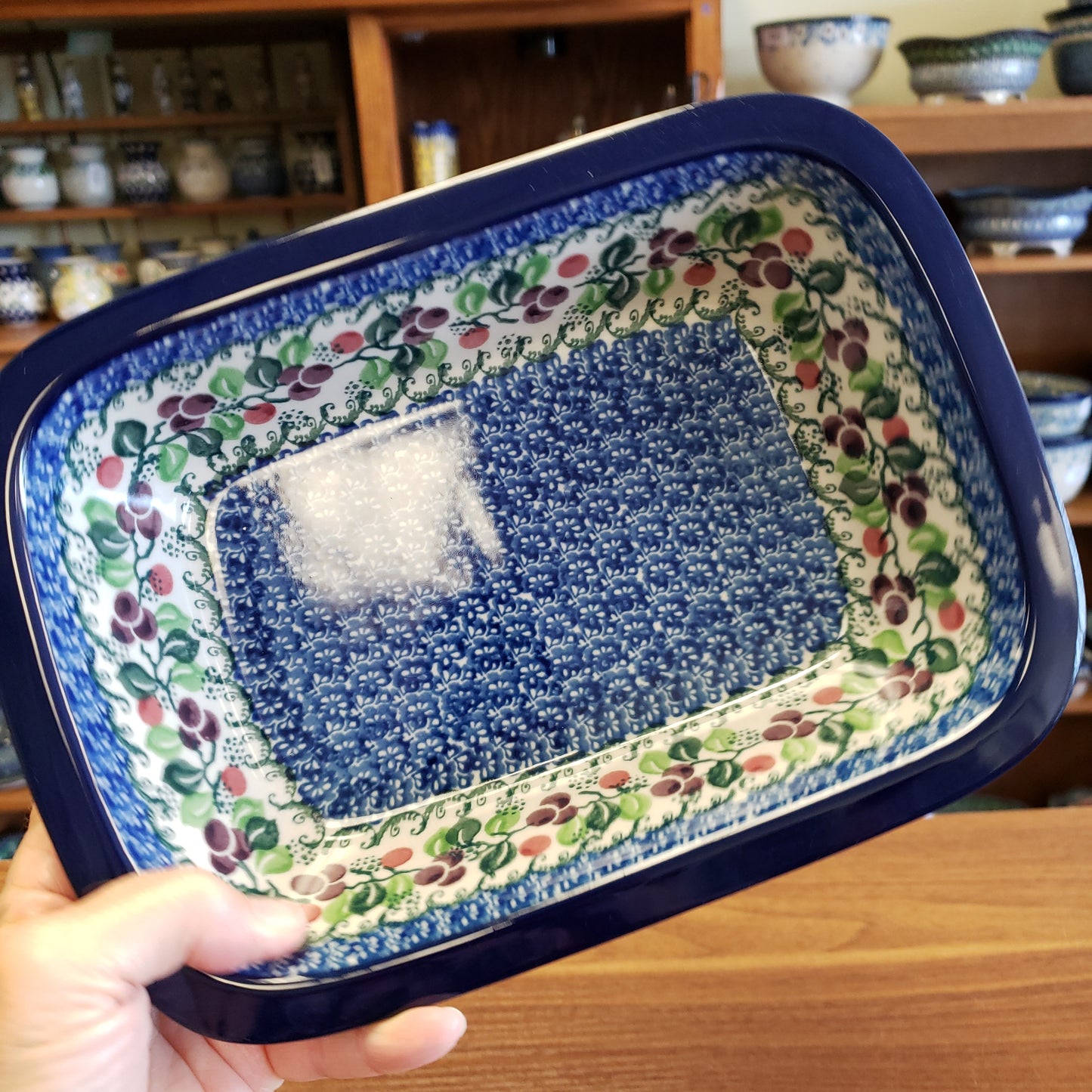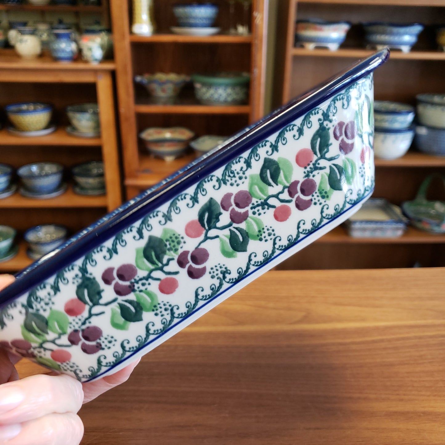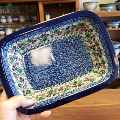 Polish Pottery Baker ~ w/Grip Edge ~ 7" x 9.75" 162-1418X ~ Burgandy Berry Blue