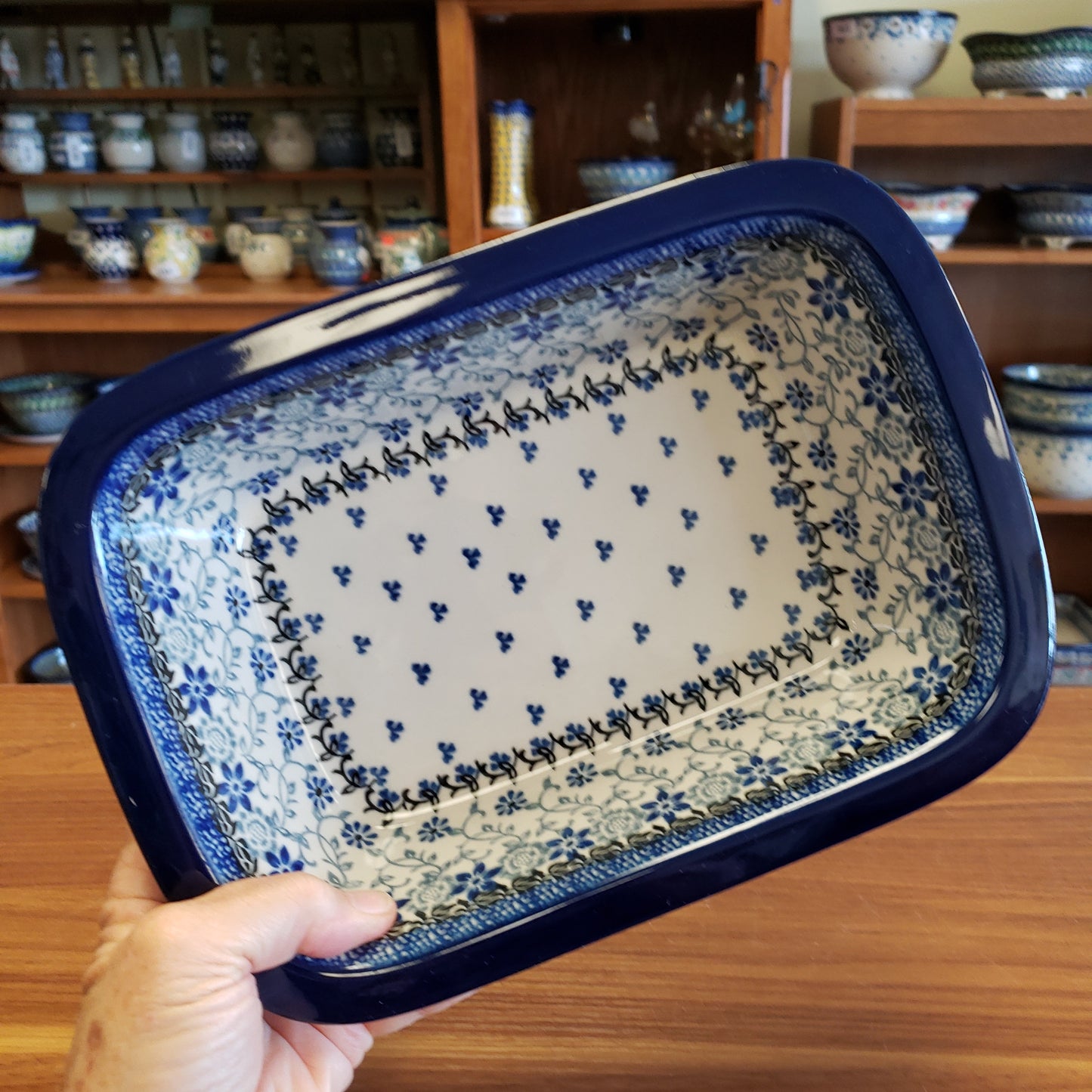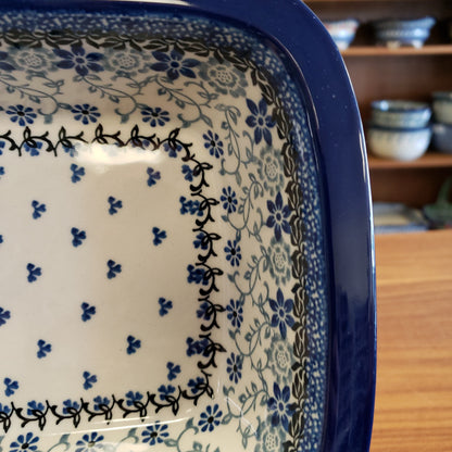 Polish Pottery Baker ~ w/Grip Edge ~ 7" x 9.75" 162-2158X ~ Silver Lace