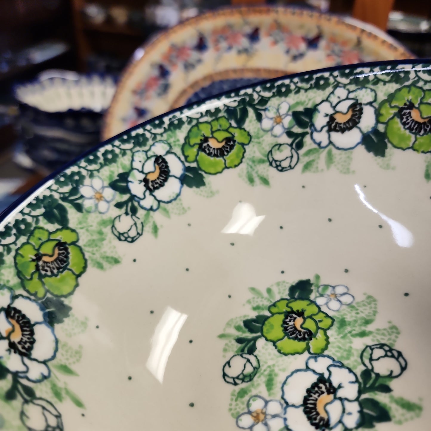 Polish Pottery Bowl ~ Nesting ~ 6.5" W 58-2320X ~ Green Poppies