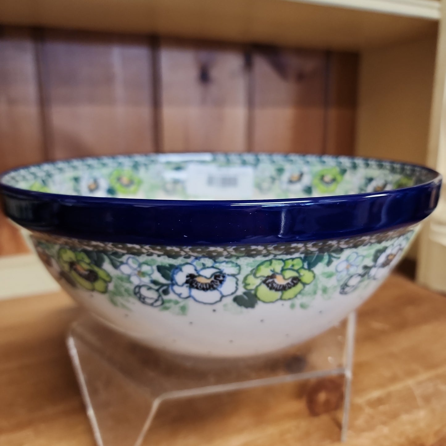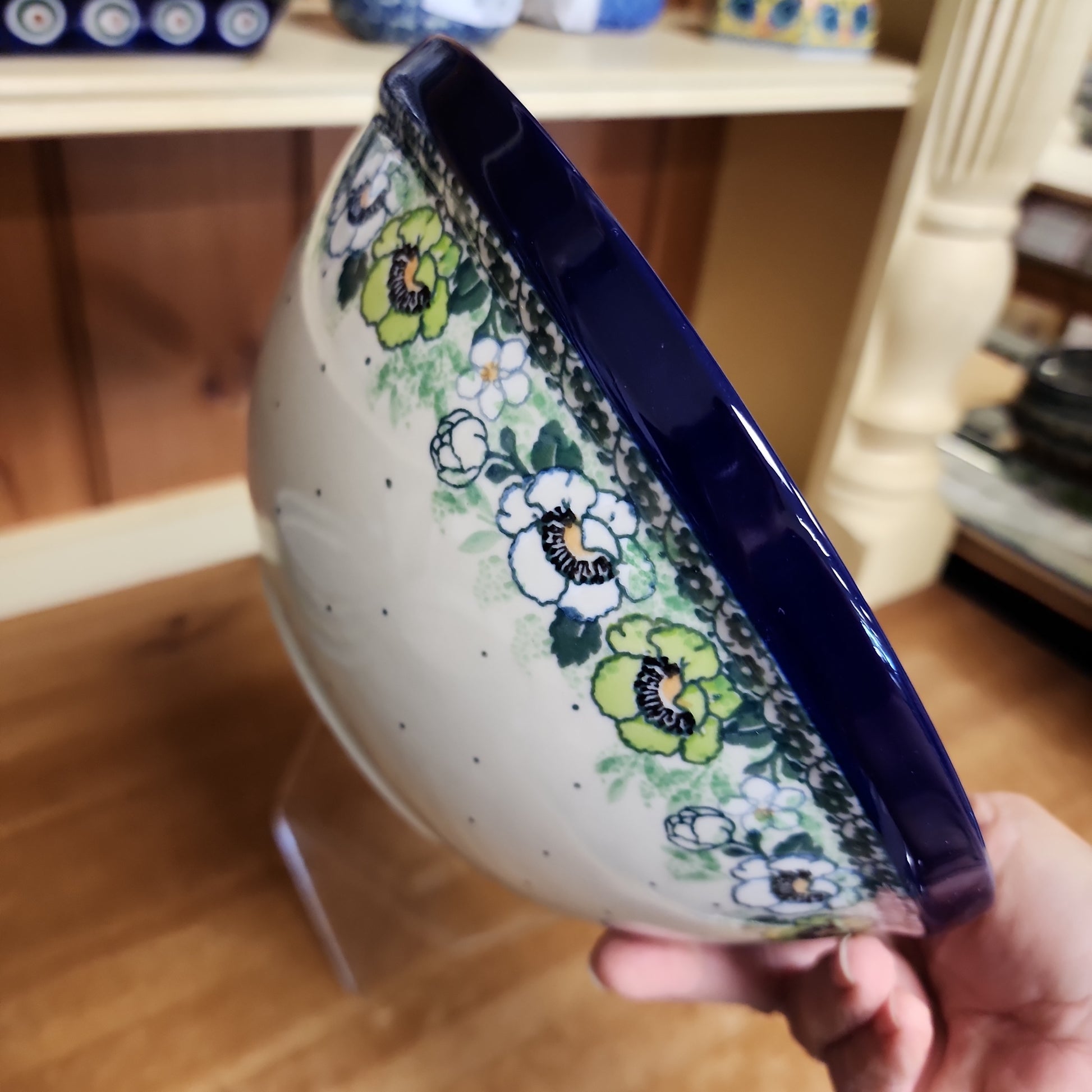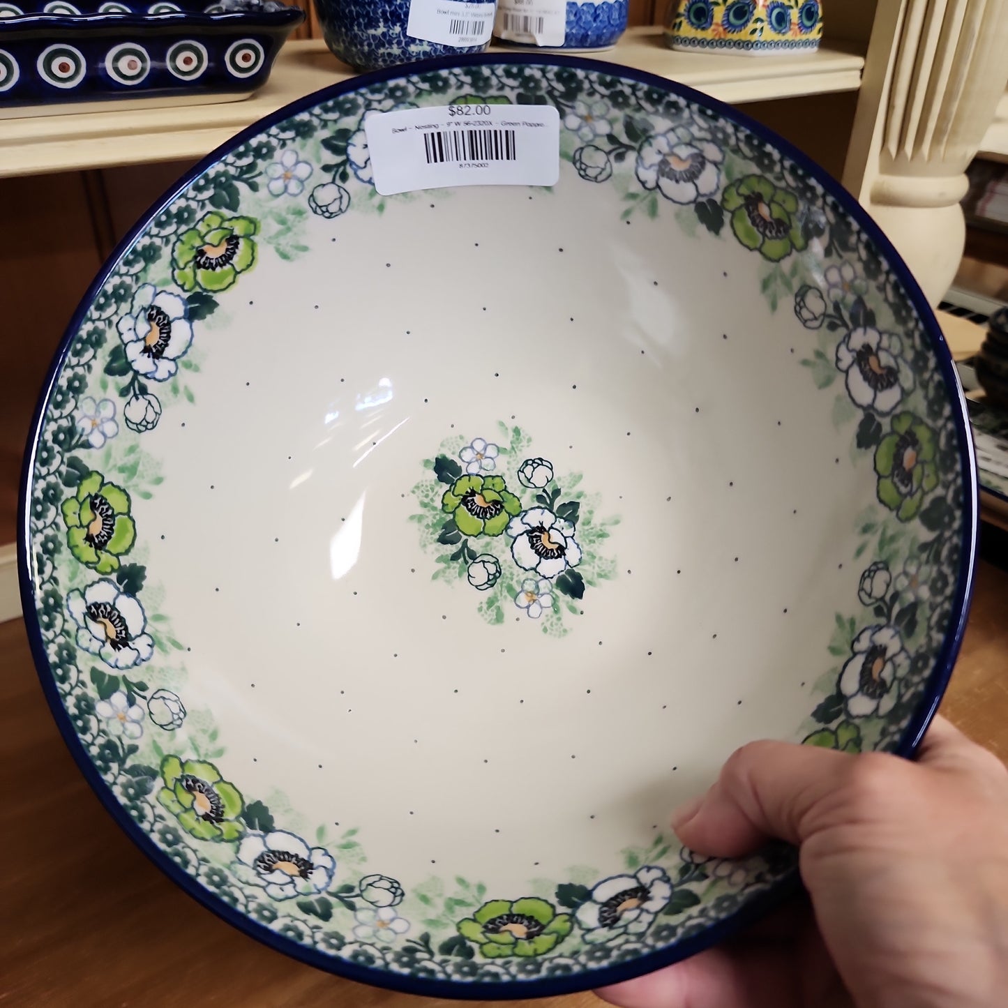 Polish Pottery Bowl ~ Nesting ~ 9" W 56-2320X ~ Green Poppies