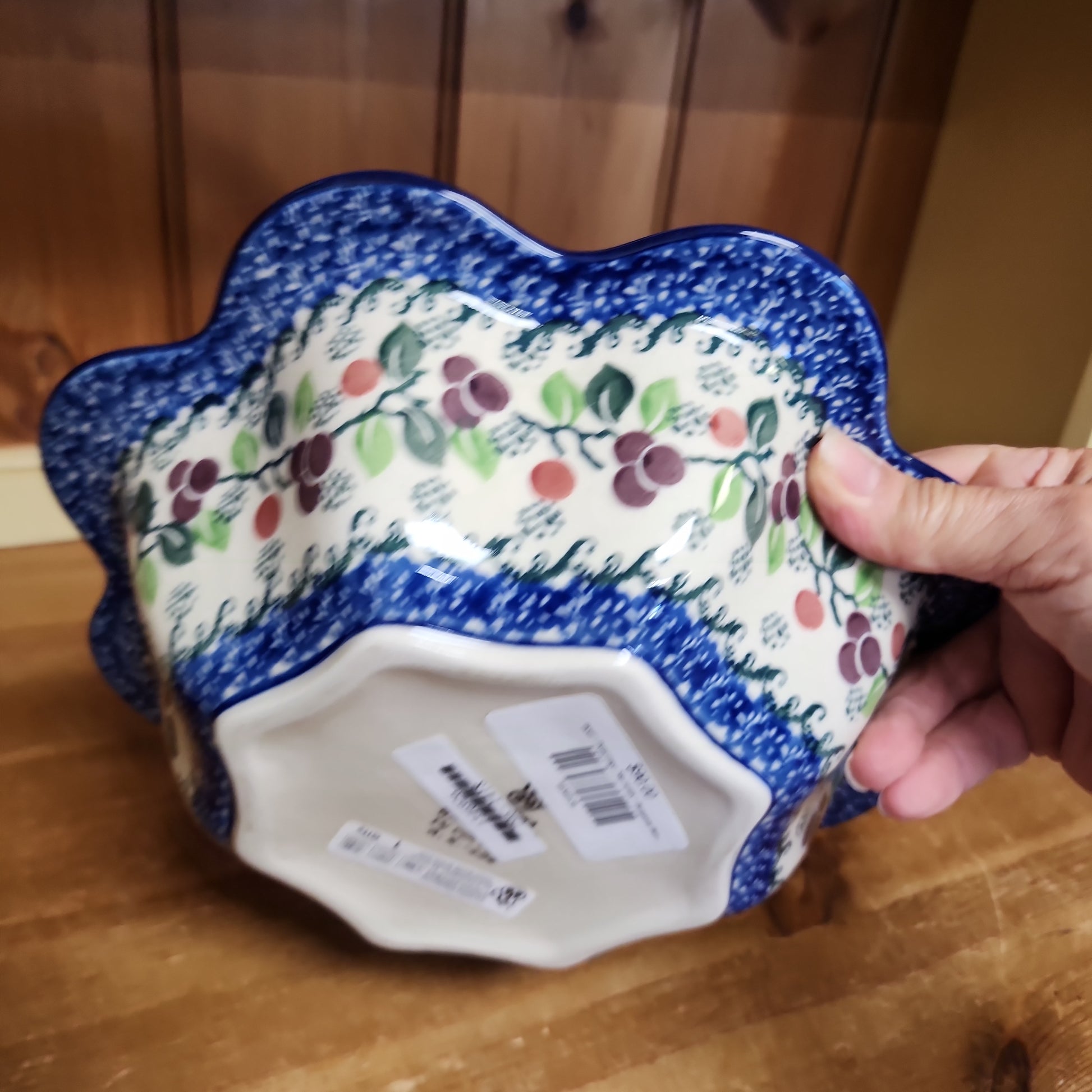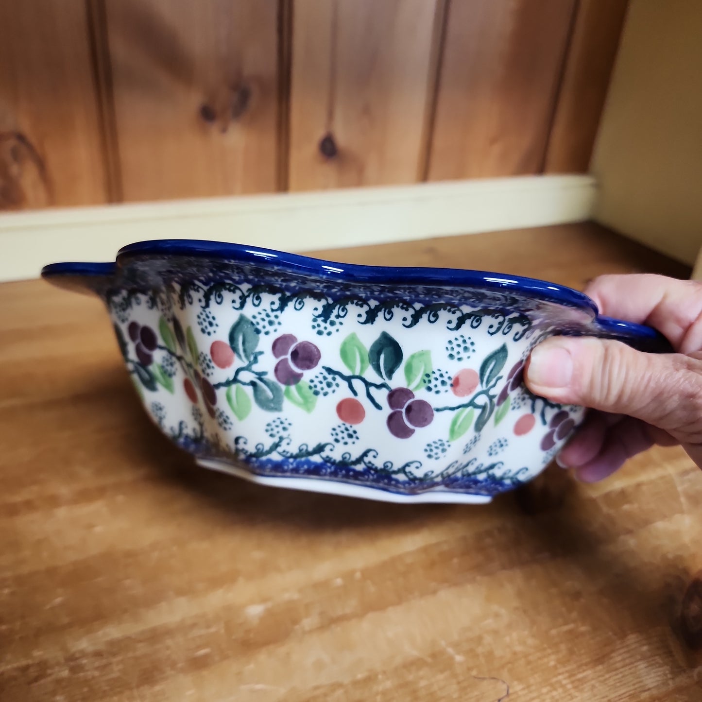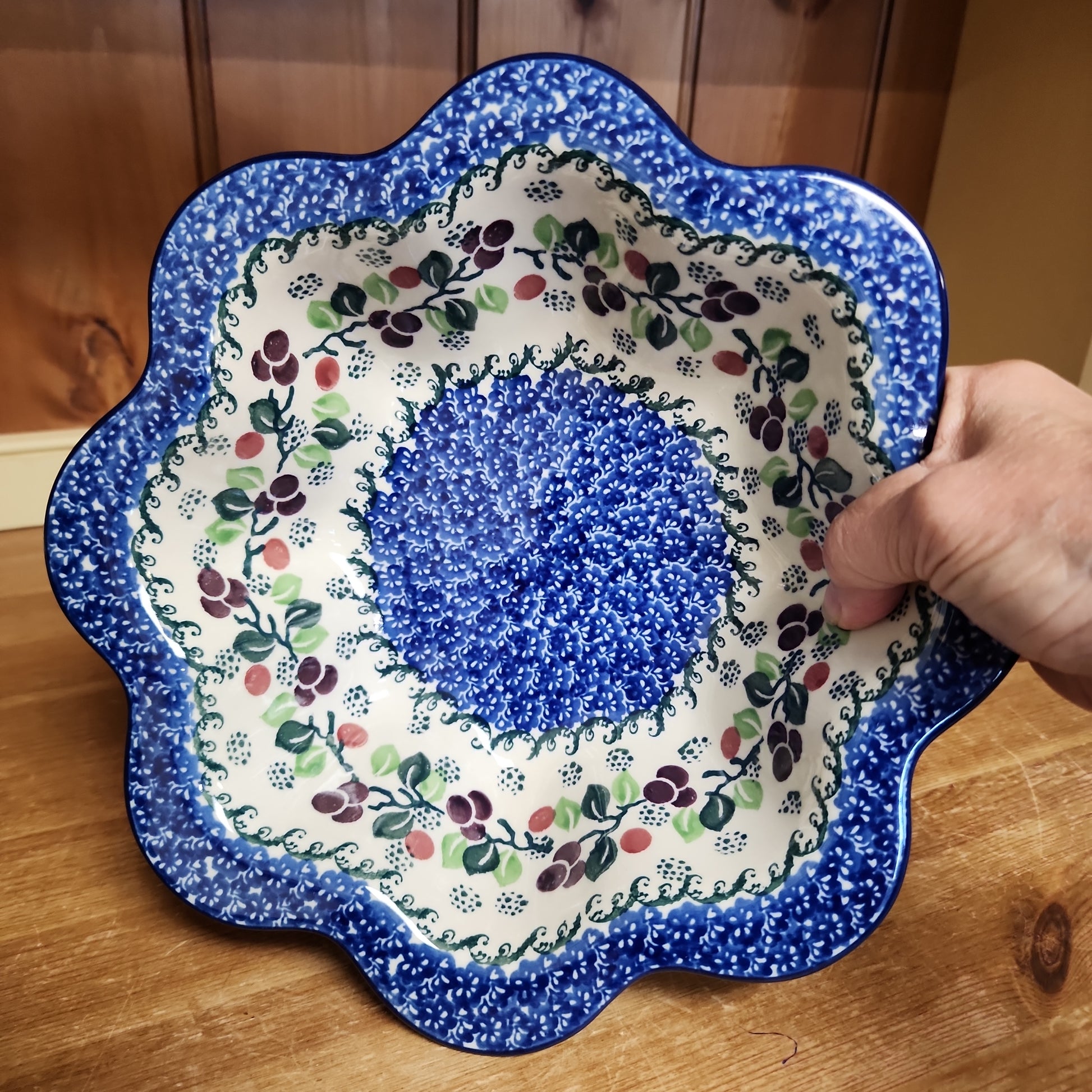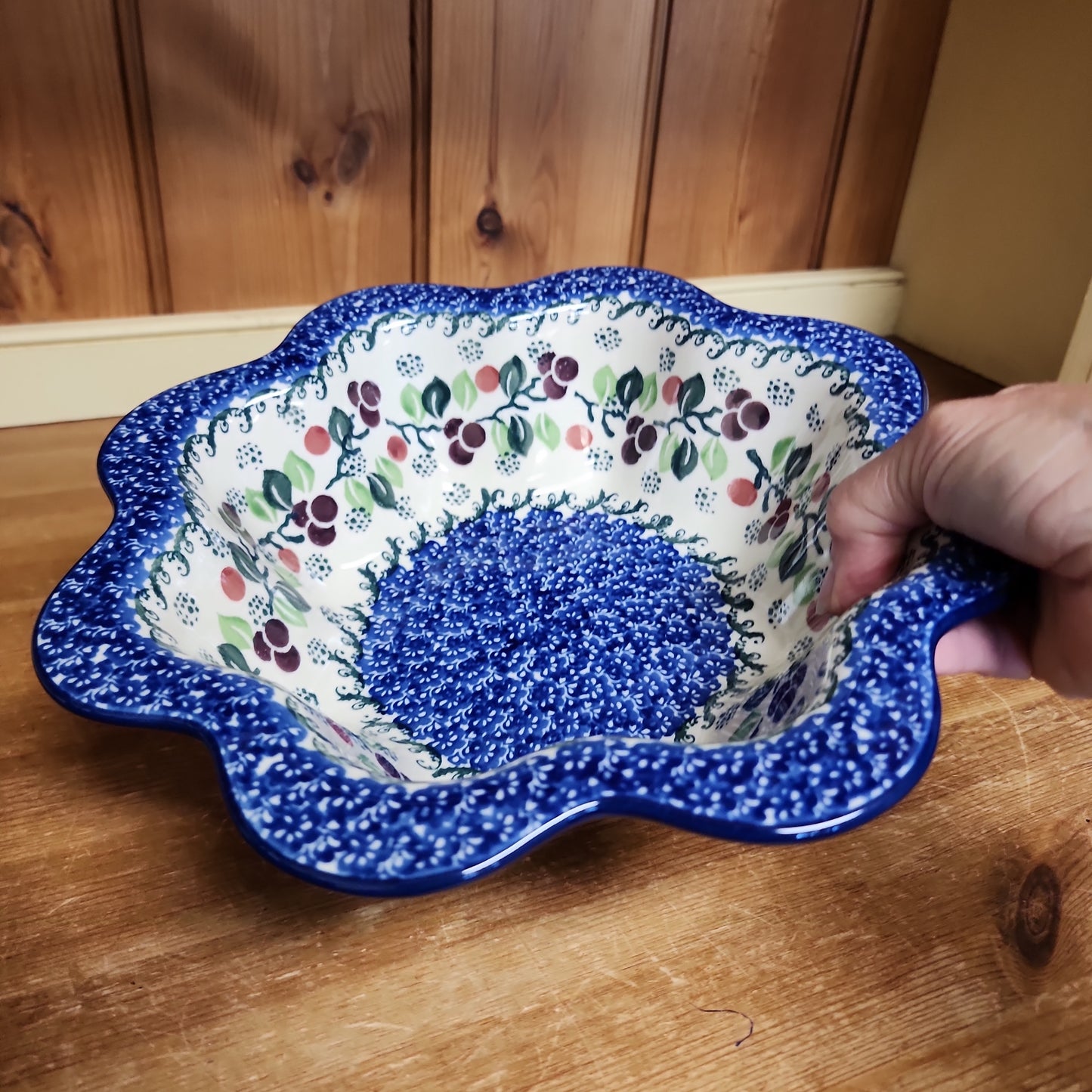 Polish Pottery Bowl ~ Petal Edge 796-1418X ~ Burgandy Berry Blue