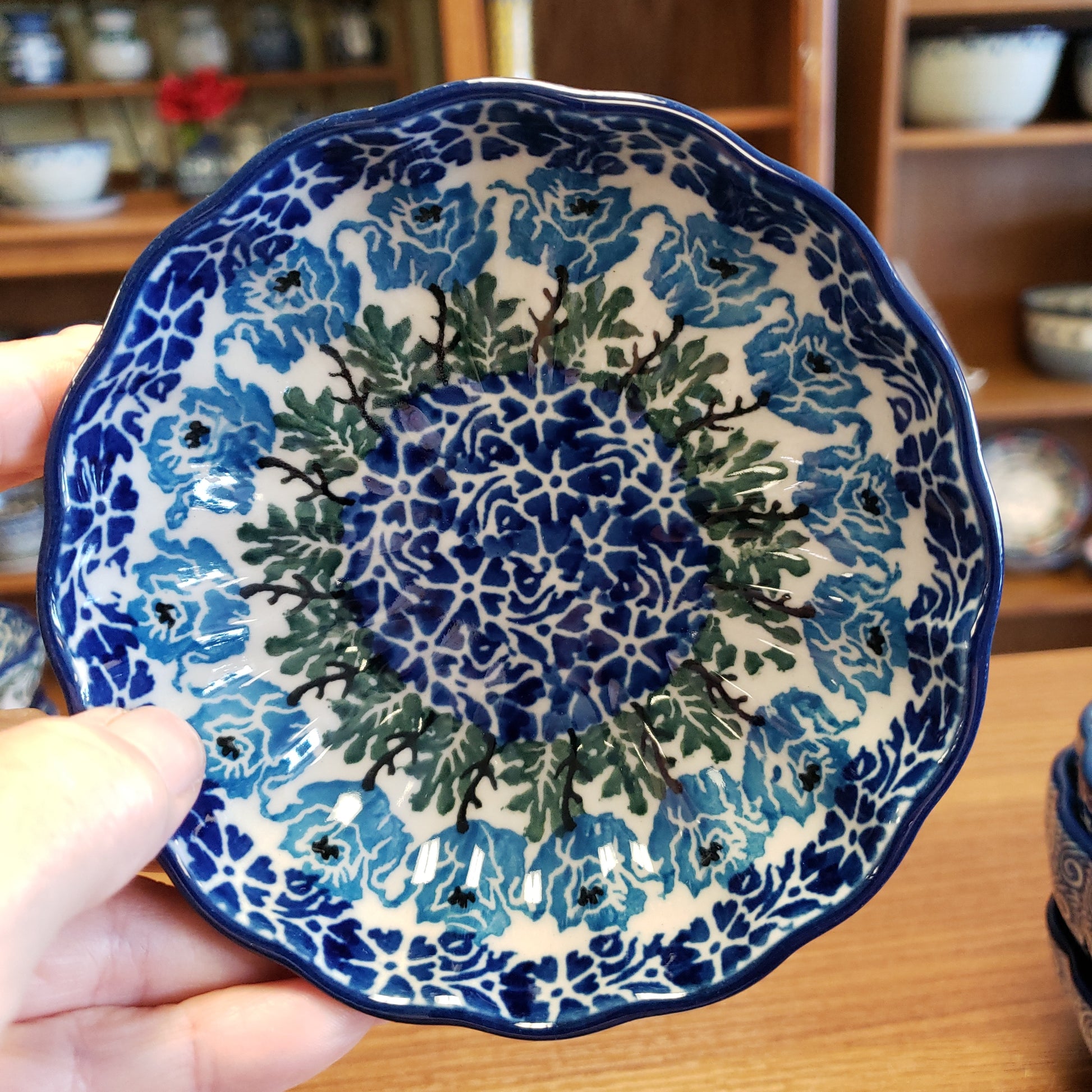 Polish Pottery Bowl ~ Scalloped ~ 4.5" 23-1390X ~ Antique Rose