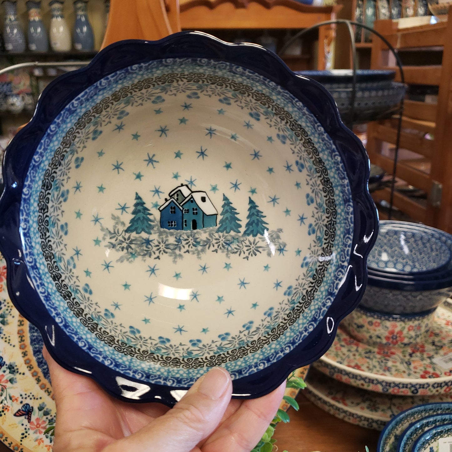 Polish Pottery Bowl ~ Scalloped Edge ~ 7" 288-U5045 ~ U4