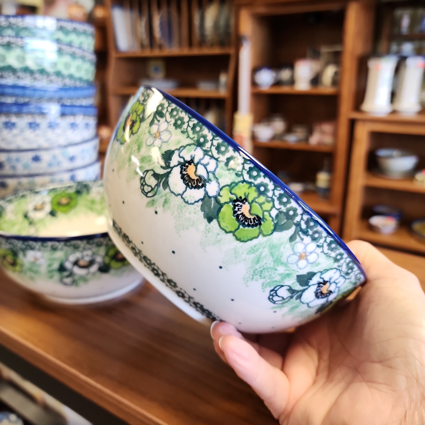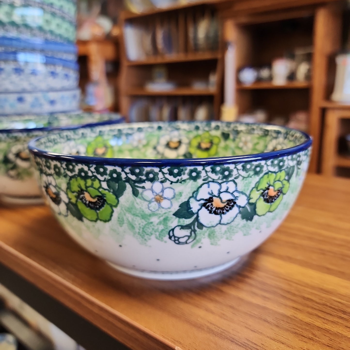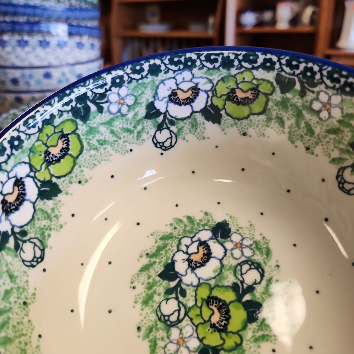 Polish Pottery Bowl ~ Soup/Salad ~ 6.25" C38-2320X ~ Green Poppies