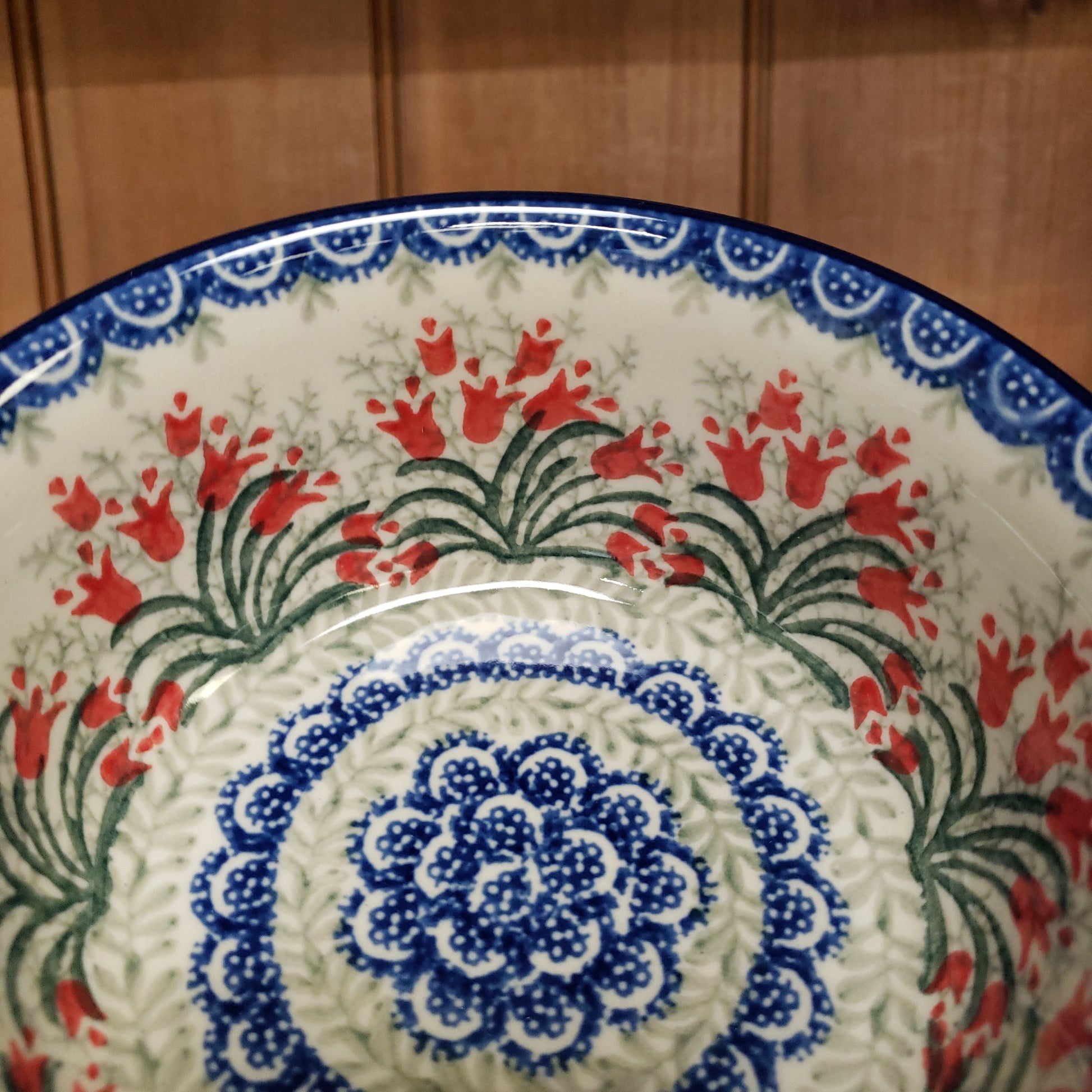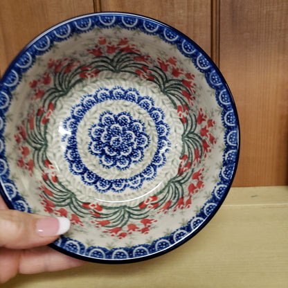 Polish Pottery Bowl ~ Soup / Salad / Cereal ~ 6"W 209-1437X Crimson Bells PF11