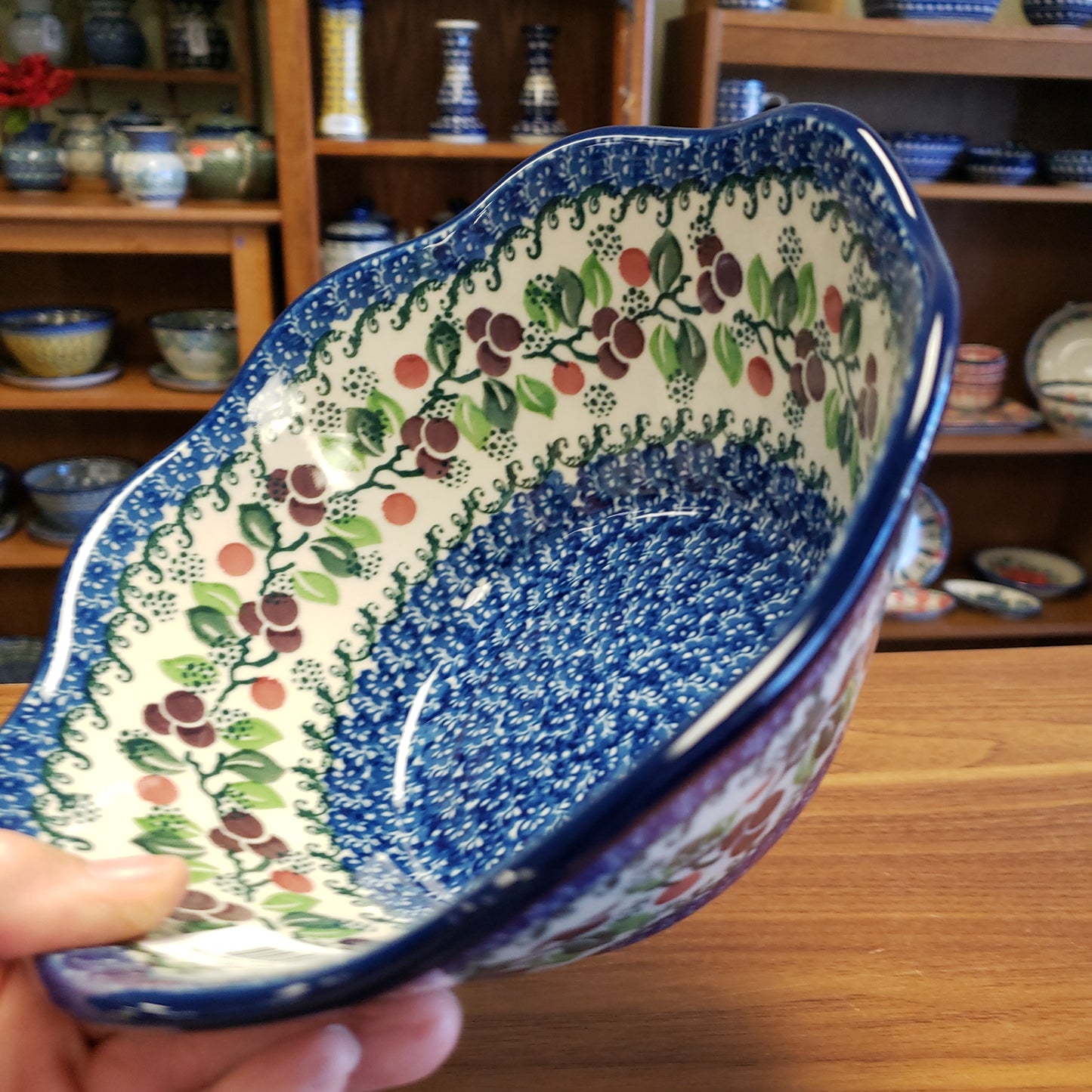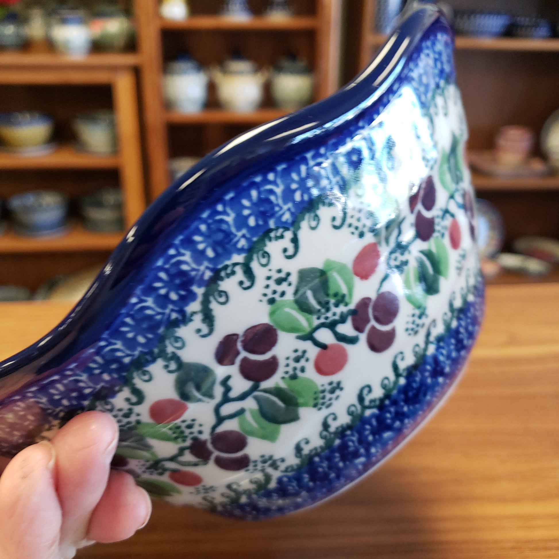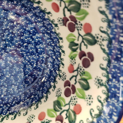 Polish Pottery Bowl ~ Wavy Edge ~ Small ~ 8" 691-1418X ~ Burgandy Berry Blue