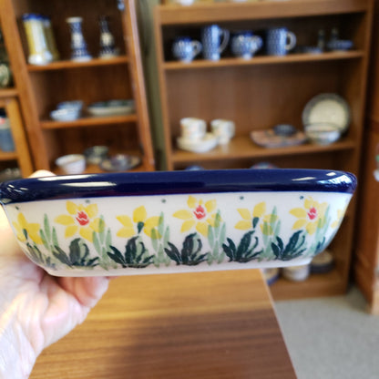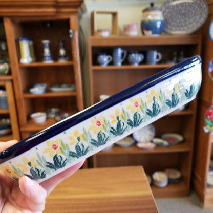 Polish Pottery Dish ~ Divided ~6.5" x 9.25" 393-2122X ~ Daffodil Blue