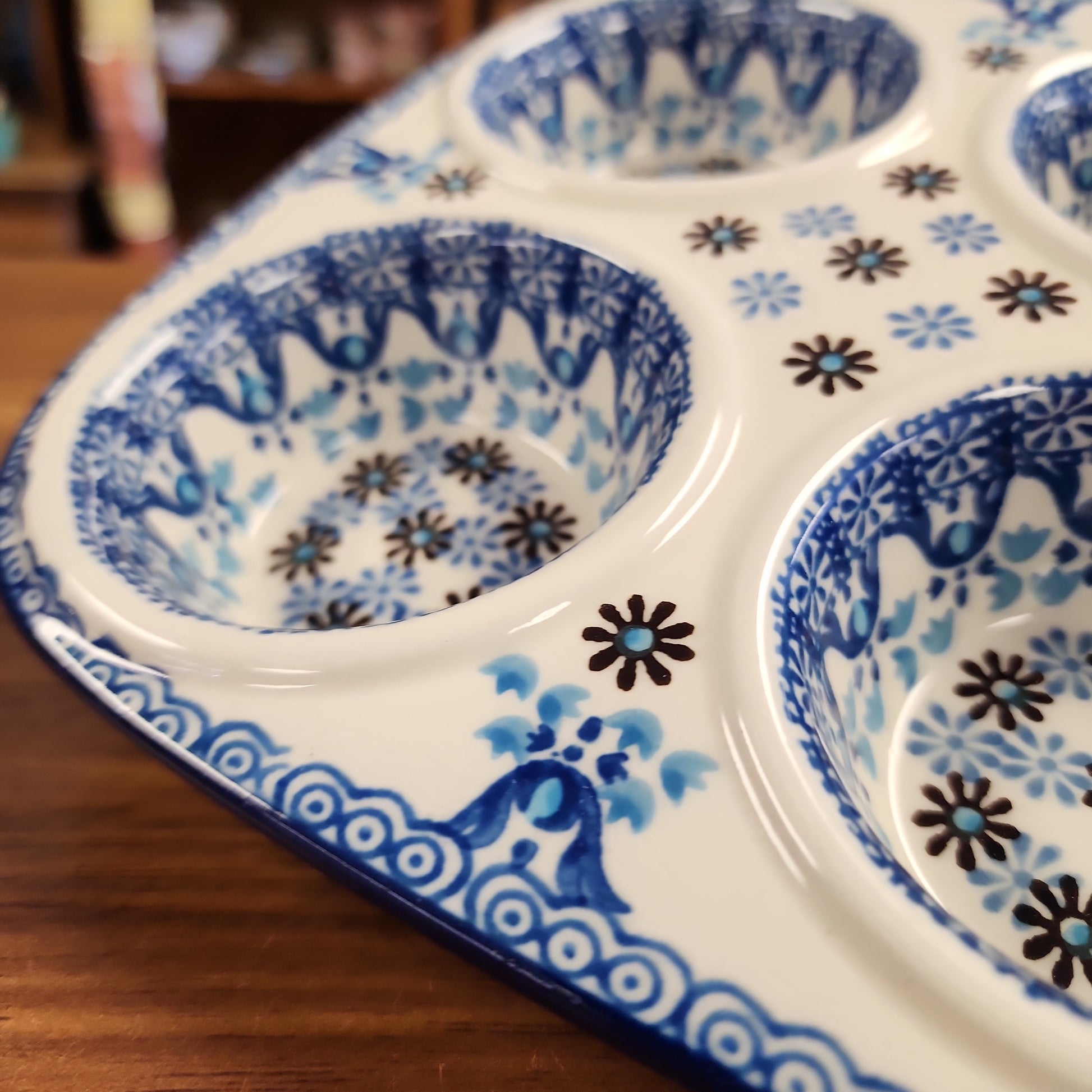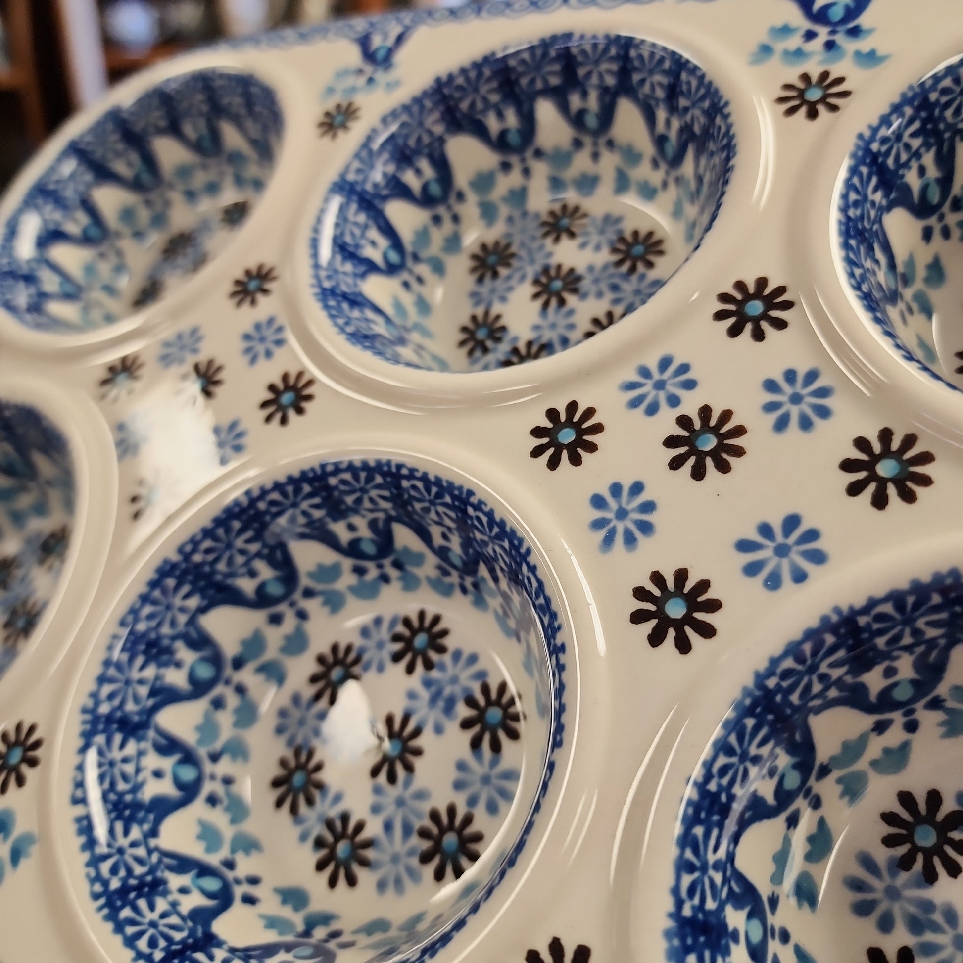 Polish Pottery Muffin Pan 811-2187X ~ Blue Yonder