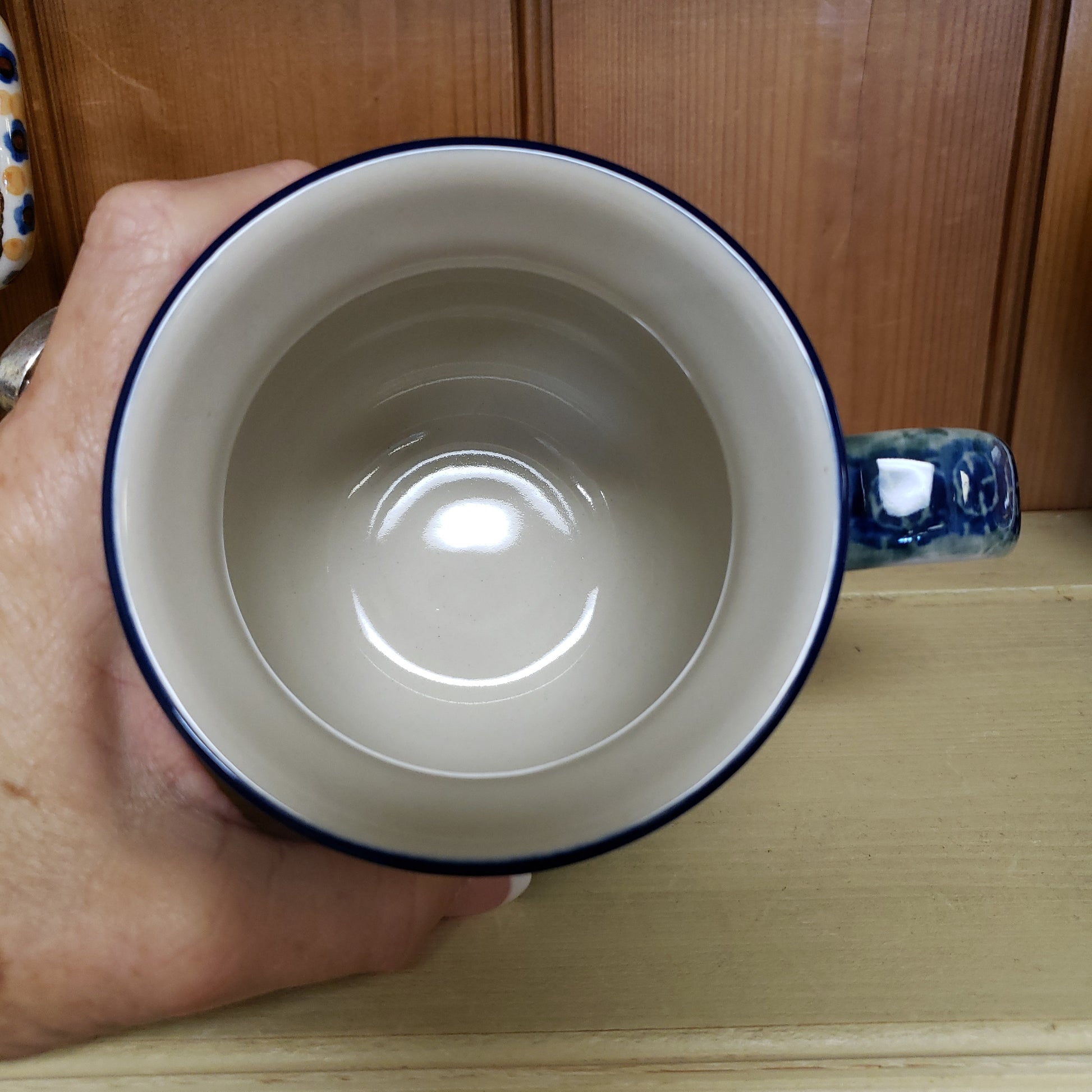 Polish Pottery Mug ~ Bubble ~ 16 oz. 73-0614X Blue Spring Daisy PF11