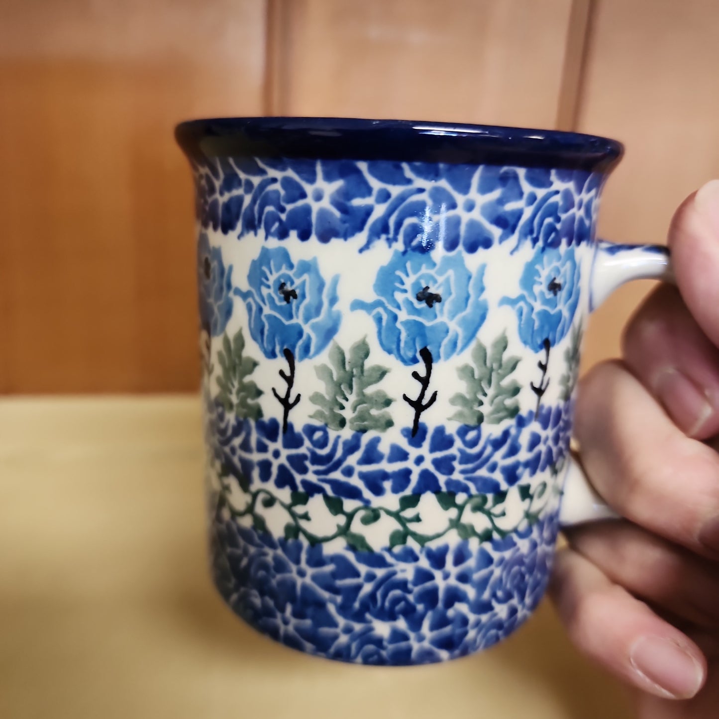 Polish Pottery Mug ~ Straight Side ~ 8 oz 236-1390X Antique Rose PF11