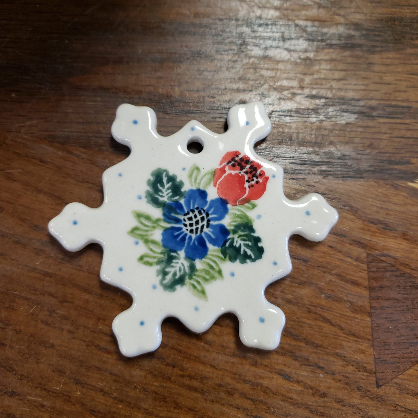 Polish Pottery Ornament ~ Snowflake ~ 3" x 3" A88-1535X ~ Garden Party