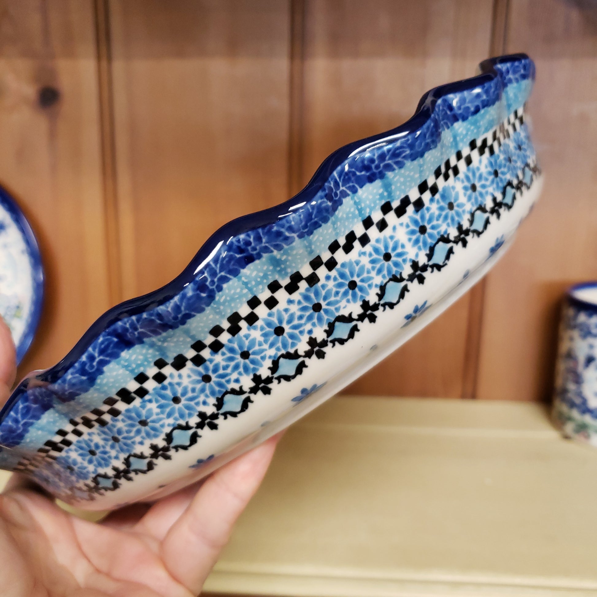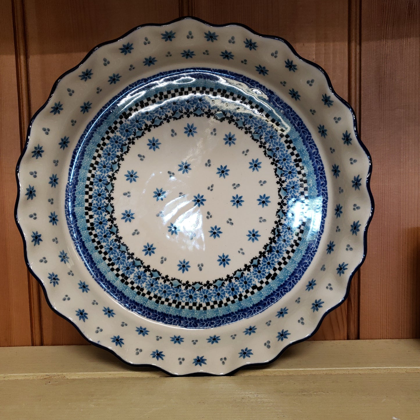 Polish Pottery Pie Plate ~ Fluted ~ 10" 636-2044X Retro Blue PF11