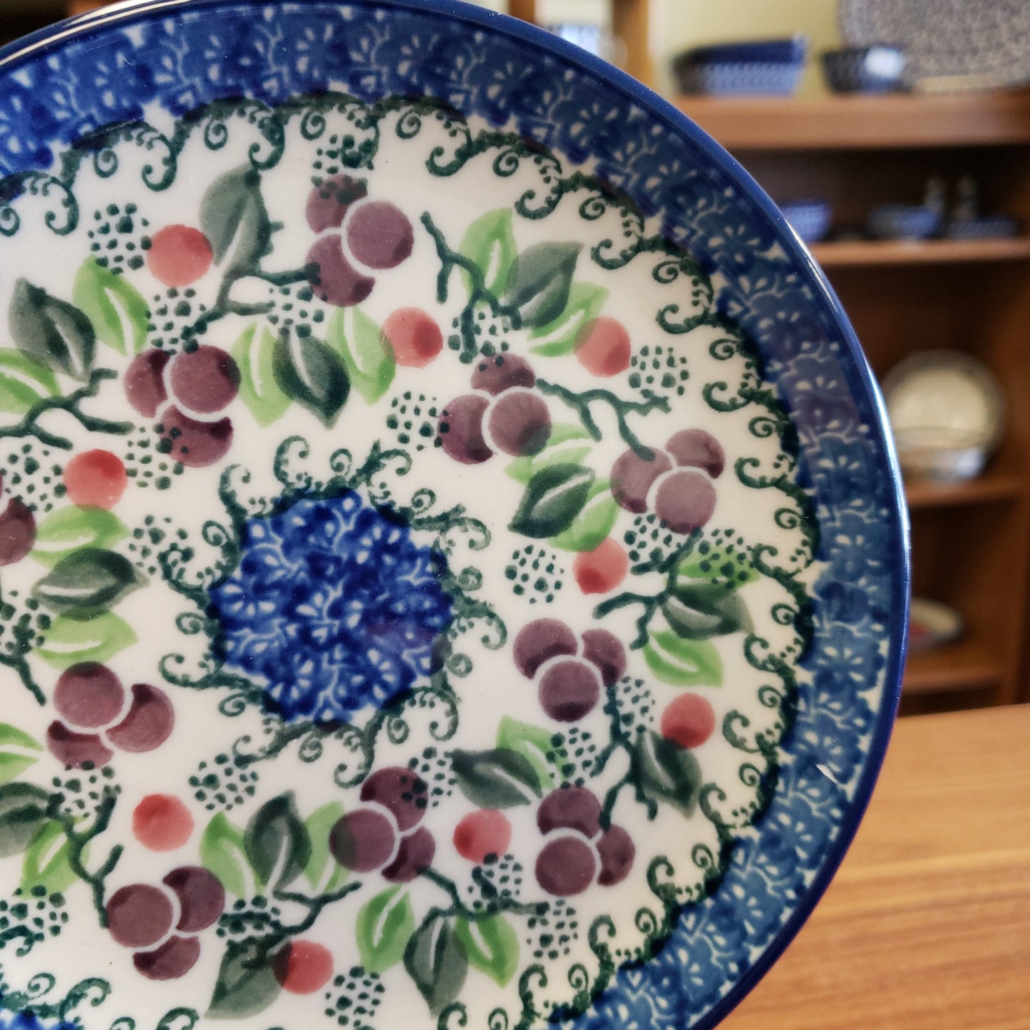Polish Pottery Plate ~ Bread & Butter ~ 6.25" 261-1418X ~ Burgandy Berry Blue