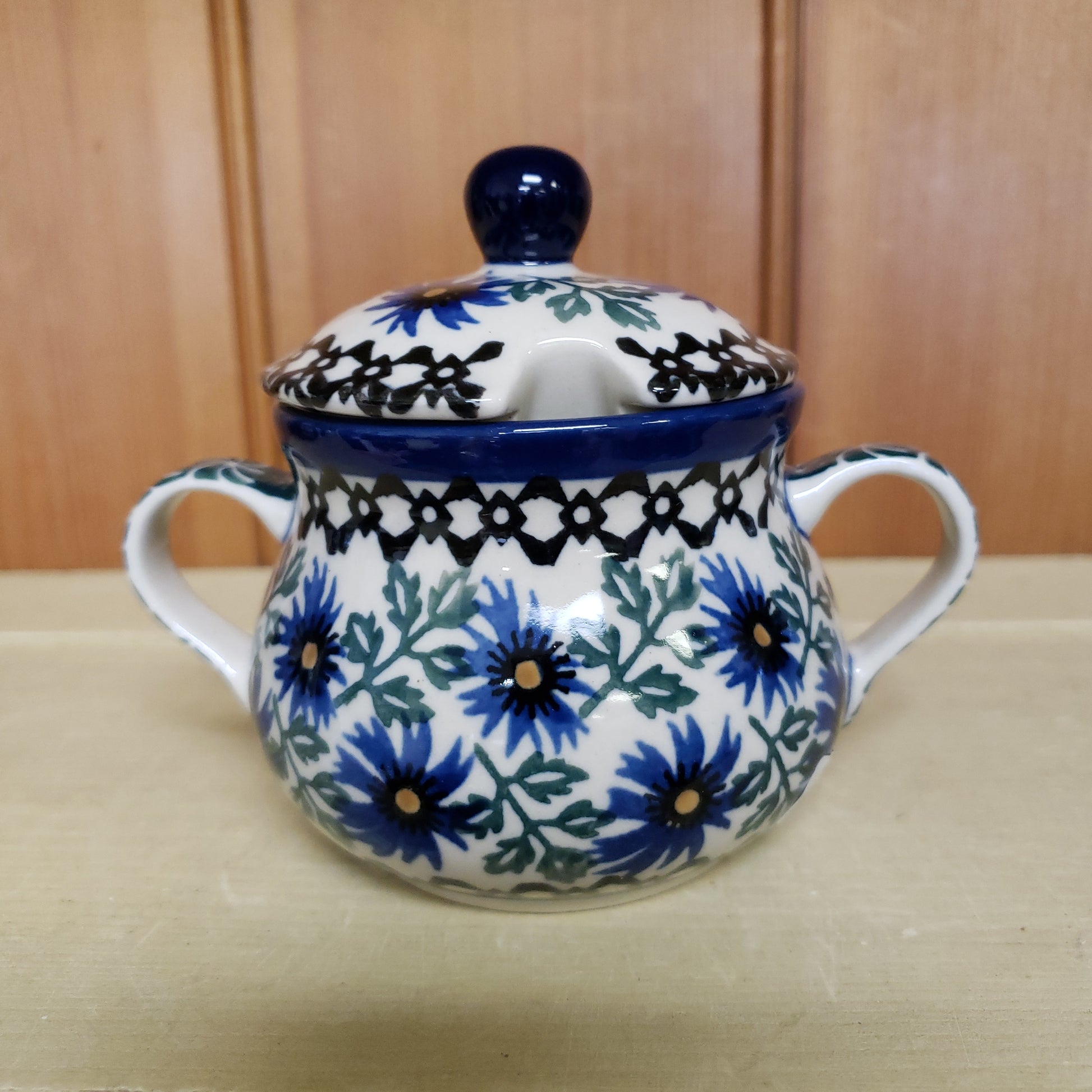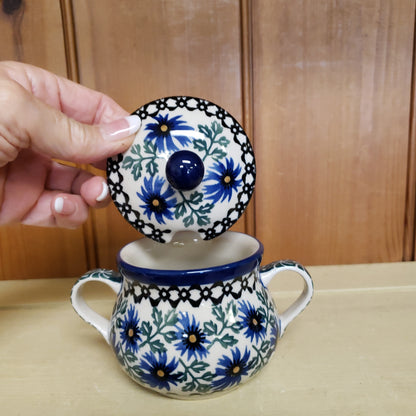 Polish Pottery Sugar Bowl ~ 7 oz 35-0976X Blue Chicory PF11