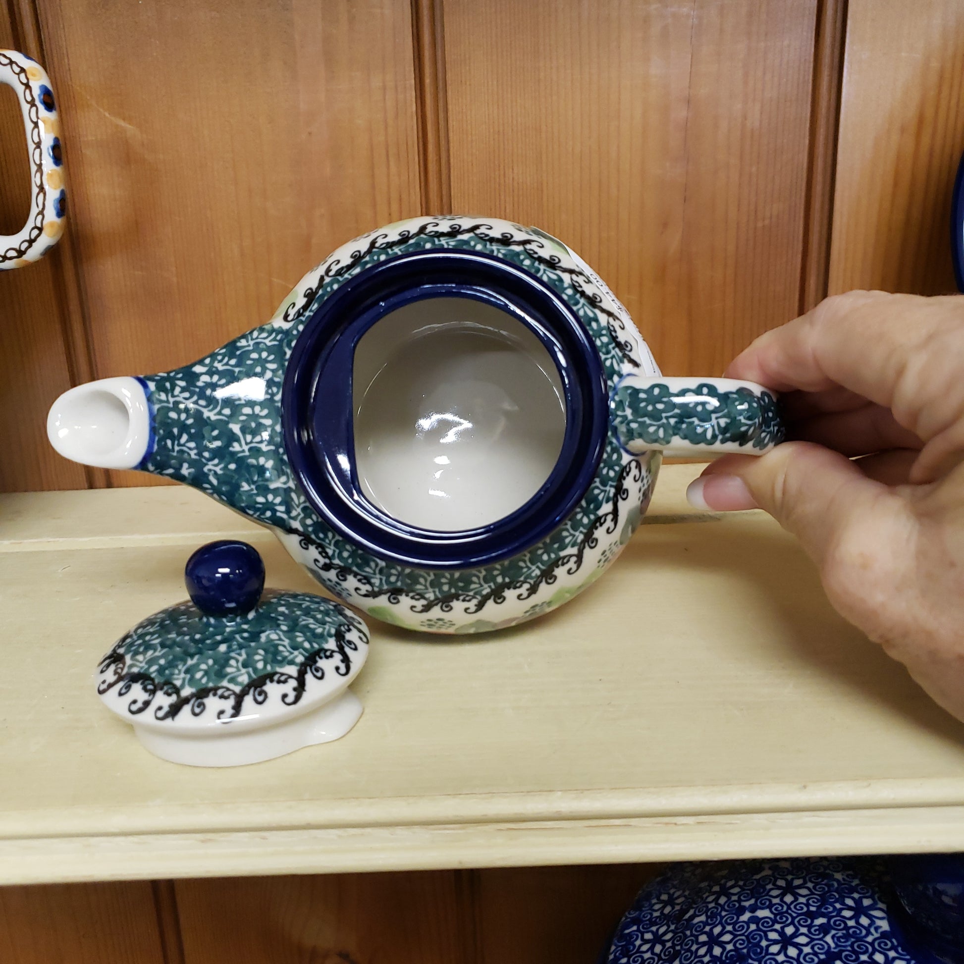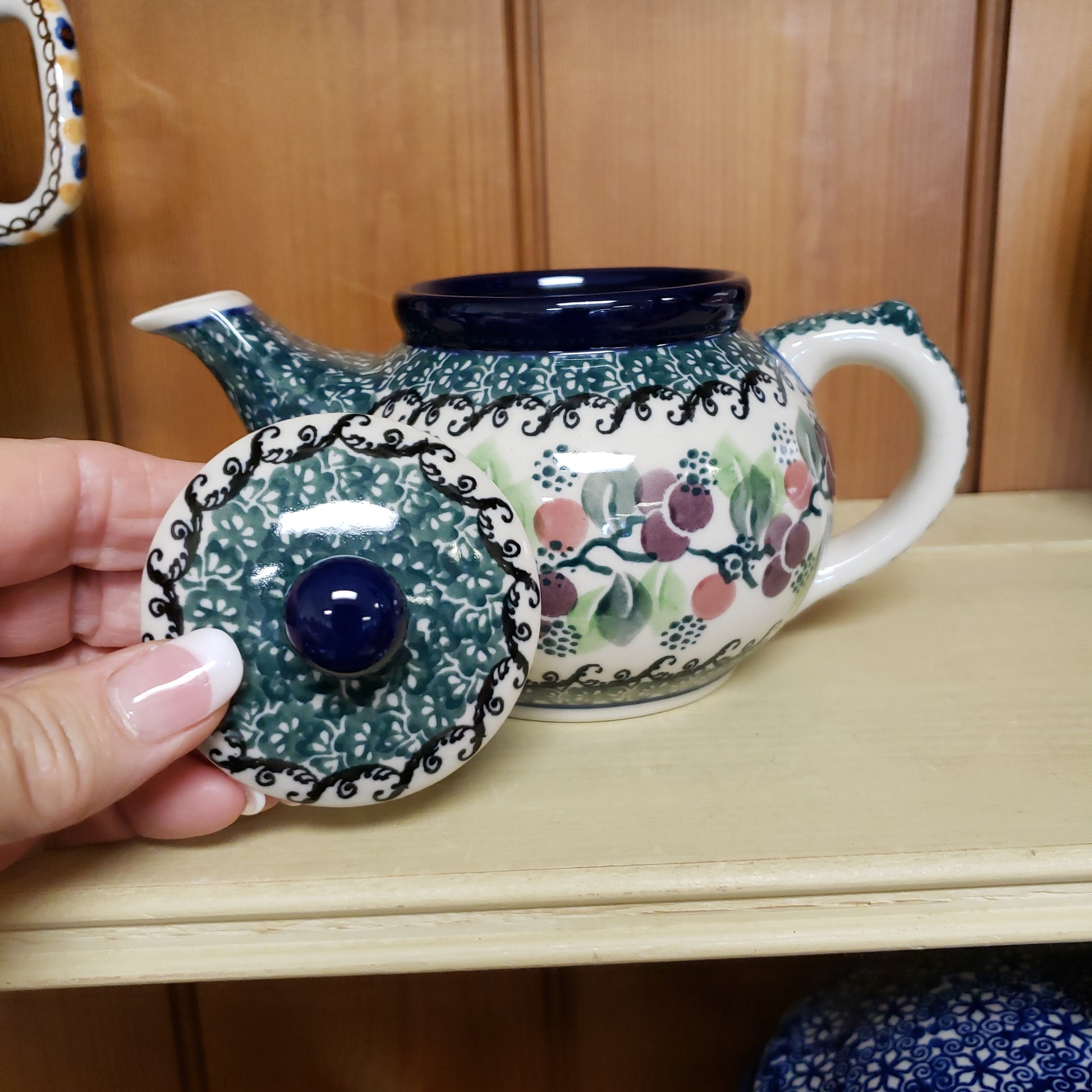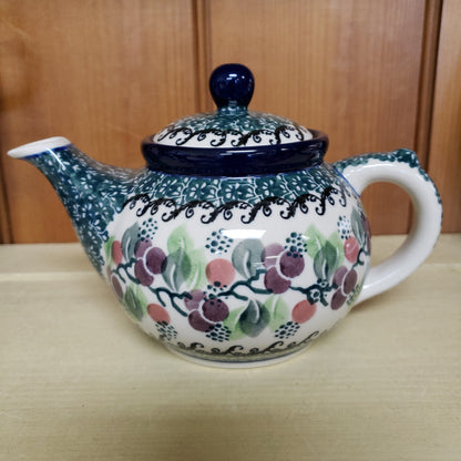 Polish Pottery Teapot ~ 12 oz. 120-1415X Burgundy Berry Green PF11